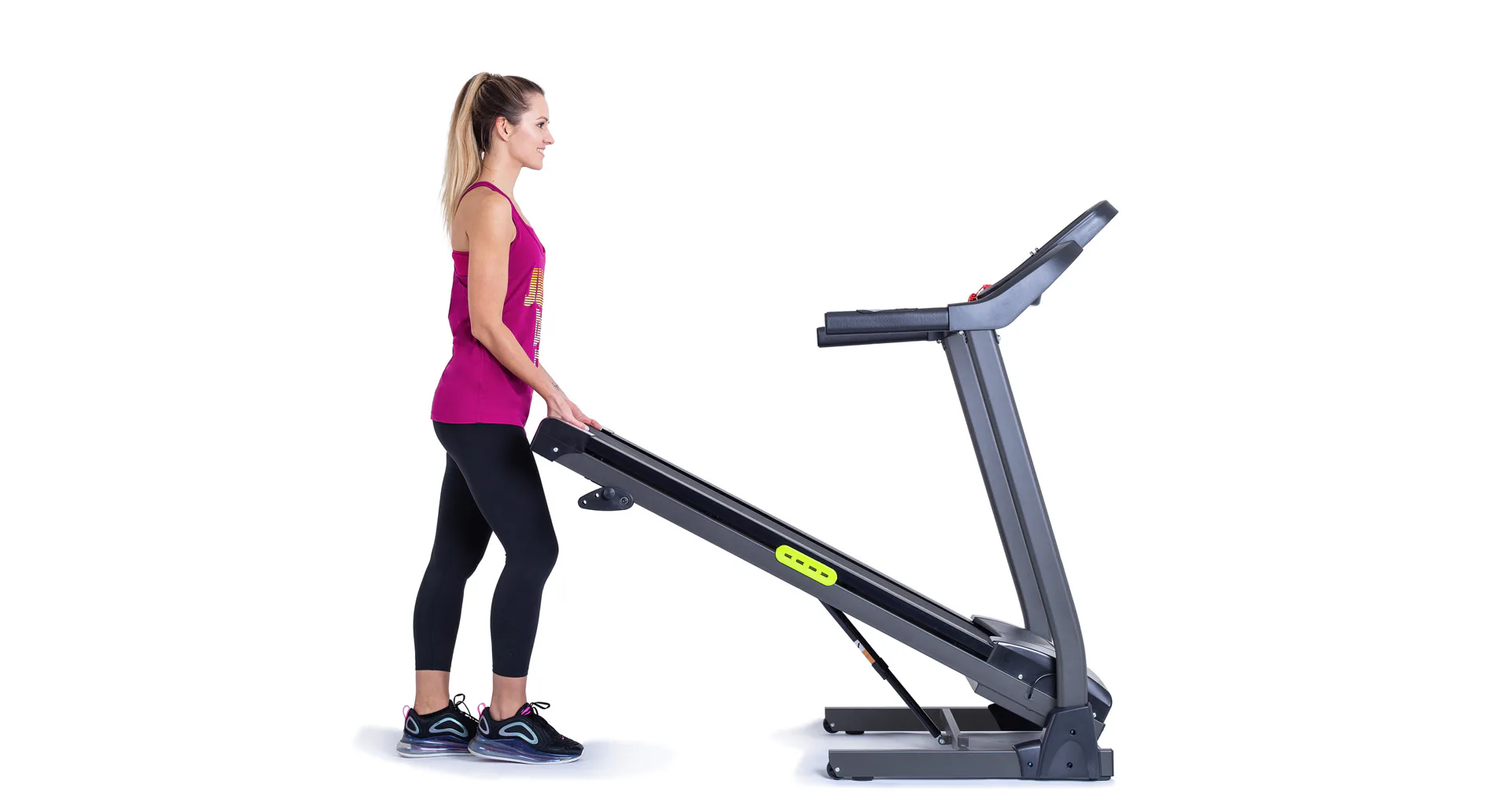 Integrovaná kolečka v přední části stroje a možnost složení vám usnadní manipulaci a můžete tak pás přemístit, kam budete potřebovat.