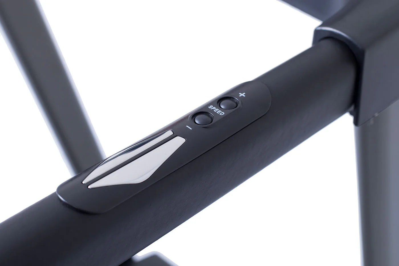 V madlech jsou integrovaná madla s dlaňovými snímači tepové frekvence a ovládání rychlosti.