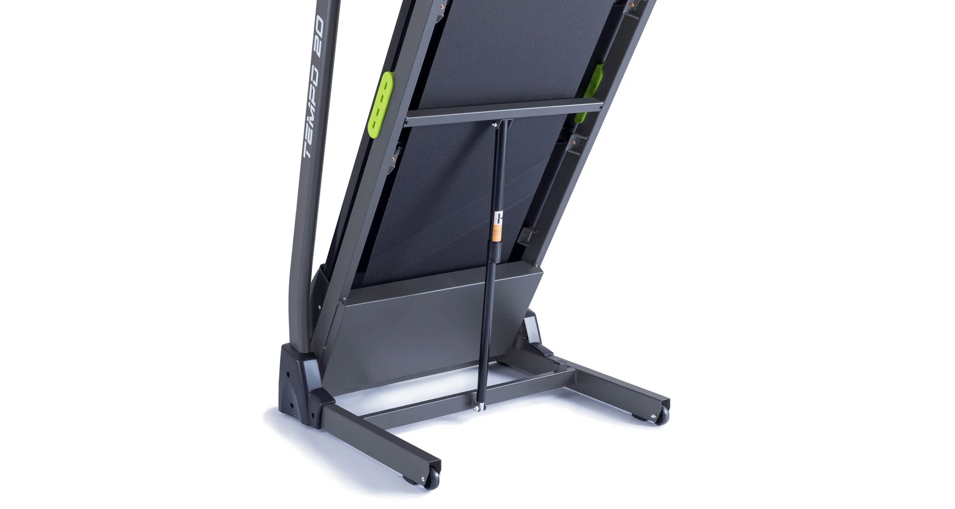 Vaše klouby při běhání budou v bezpečí díky speciálnímu rámovému odpružení prostřednictvím gumových silentbloků a pro snadnou manipulaci s pásem je možné pás složit do vertikální polohy a přemístit díky transportním kolečkům.