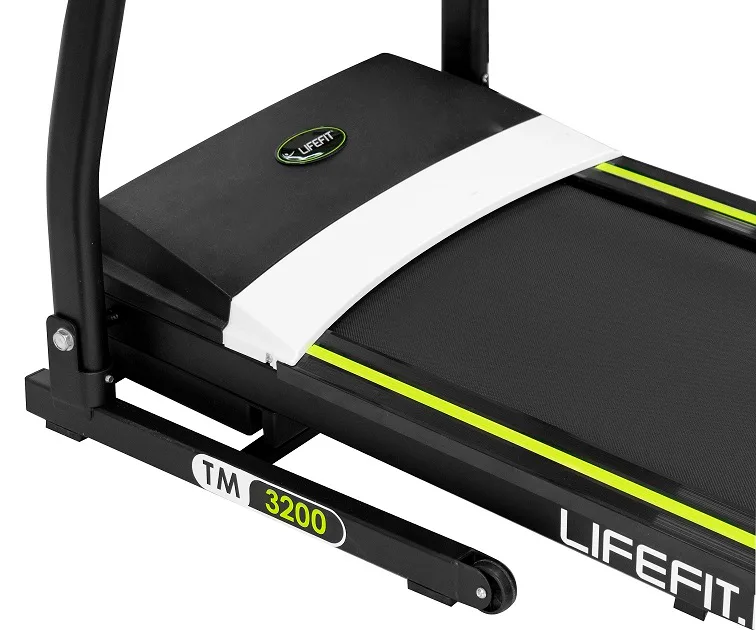Motorový běžecký pás LIFEFIT TM3200 patří mezi základní domácí trenažéry vhodné pro začínající cvičence Pás disponuje motorem s trvalým výkonem 1,25 HP (0,93 kw), díky čemuž je vhodný pro svižnou chůzi, běh i sprint. Odpružená běžecká plocha má rozměry 40 x 120 cm. Rychlost pásu je regulovatelná a můžete si ji nastavit manuálně nebo formou přednastavených programů do 14 km/h. Na tomto modelu lze nastavit také sklon běžecké plochy a to manuálně do 3 úrovní. Disponuje nosností 100 kg.