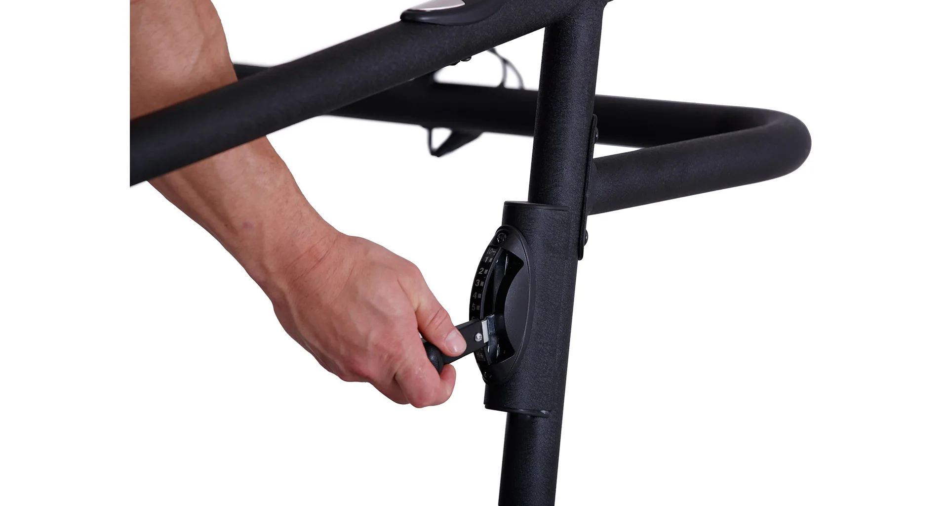 Pokud běžecký pás zrovna nepoužíváte, můžete jej jednoduše sklopit a ušetřit tak až 60% místa. Manipulaci s pásem usnadňují i transportní kolečka.