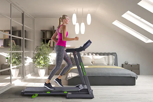 Běžecký trenažér TUNTURI Cardio Fit T30 disponuje solidní rámovou konstrukci, tichým motorem s vysokým záběrovým momentem a trvalým výkonem 1,2 HP.
