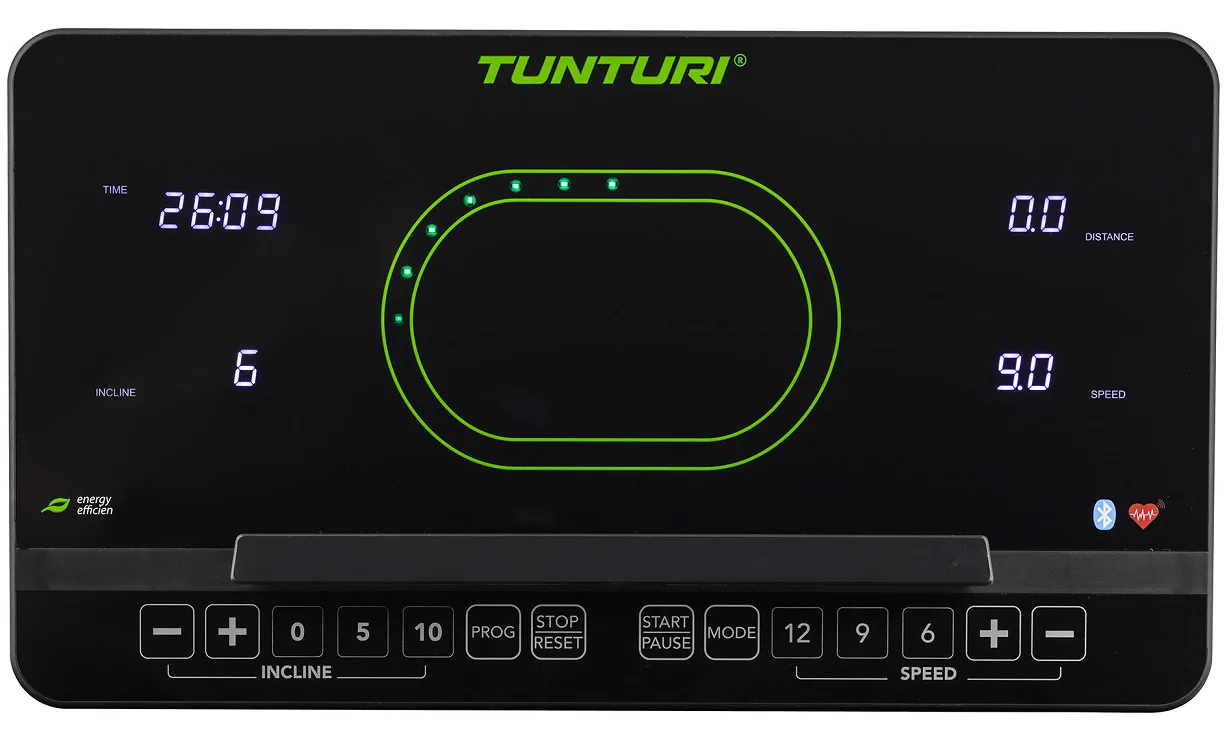 Součástí trenažéru Tunturi T50 Performance je počítač s LED displejem , který vám poskytne všechny potřebné informace v průběhu cvičení.
