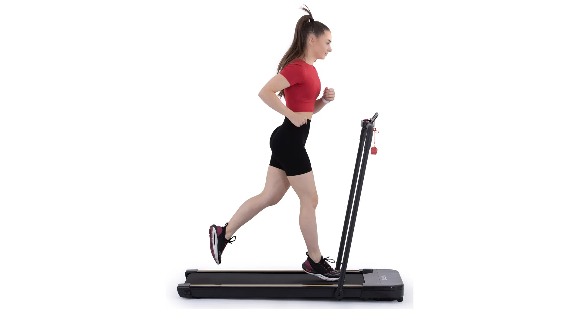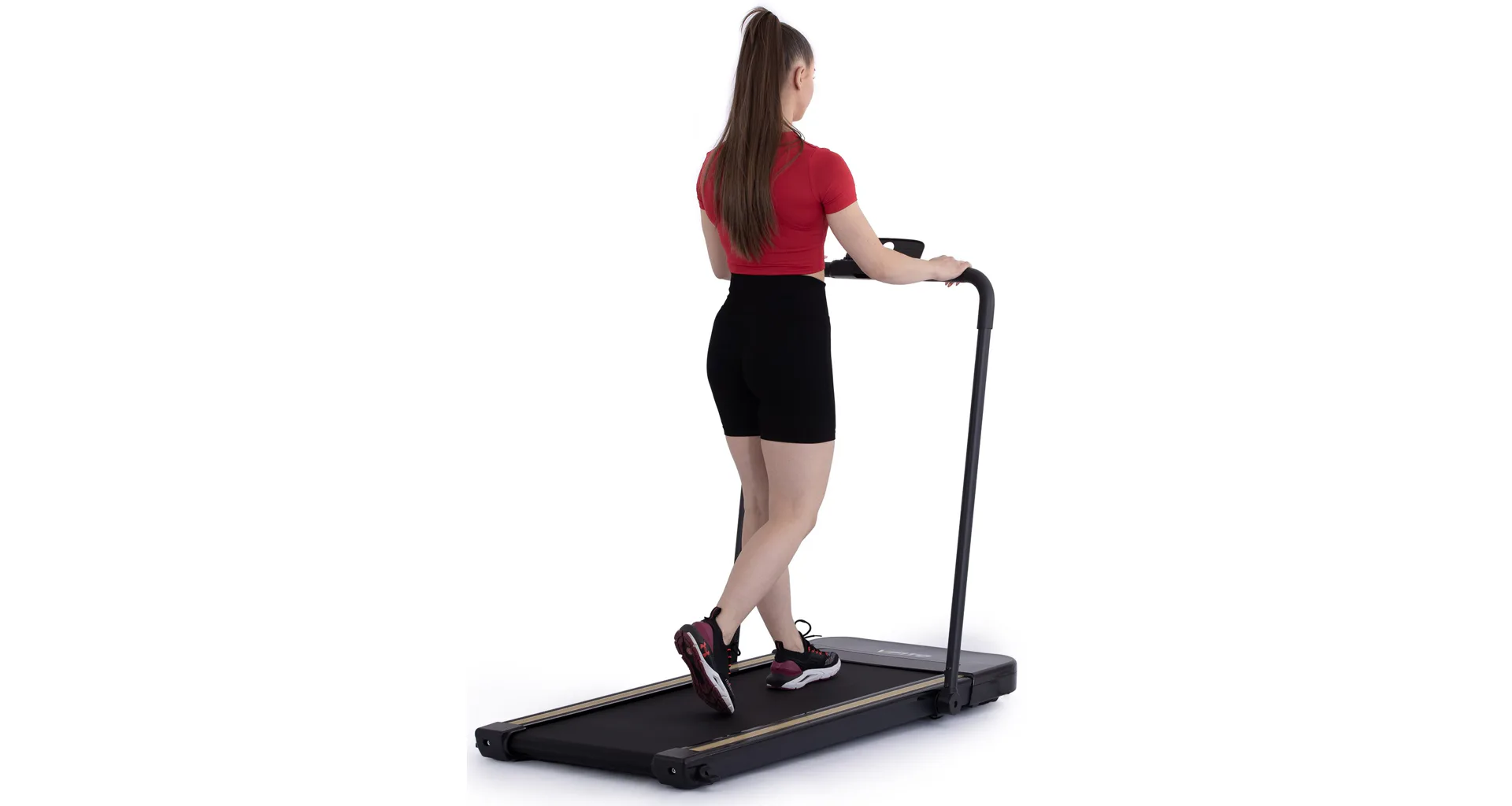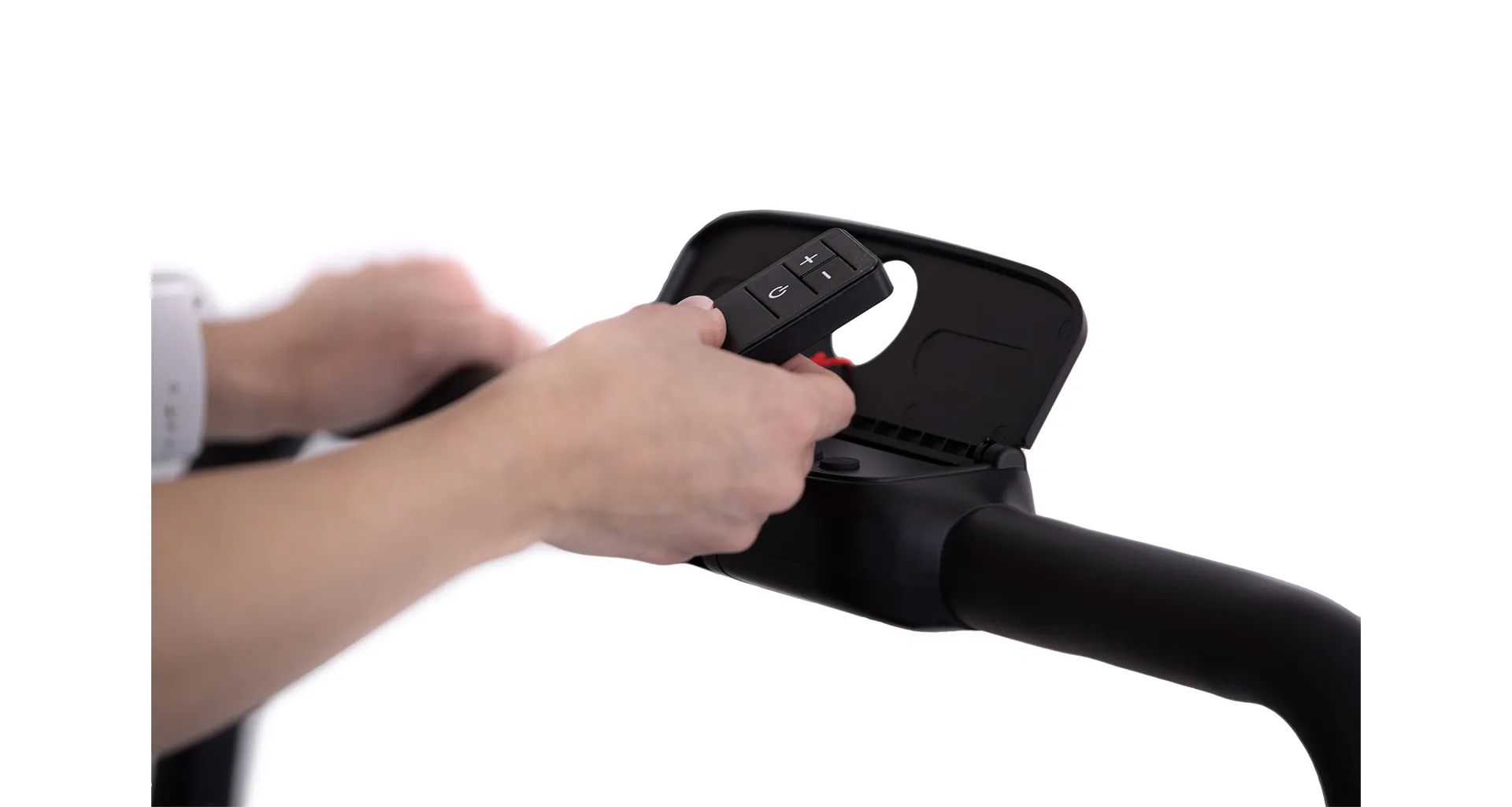 Rychlost běhu si můžete nastavovat během tréninku ručně tlačítky na panelu, nebo pomocí dálkového ovladače. Bezpečnost při chůzi/běhu zaručuje sklopné madlo, na kterém se zároveň nachází ovládací konzole.