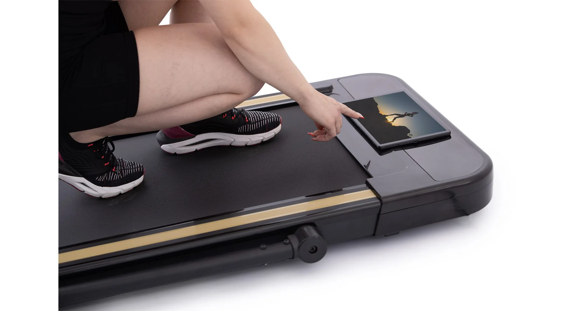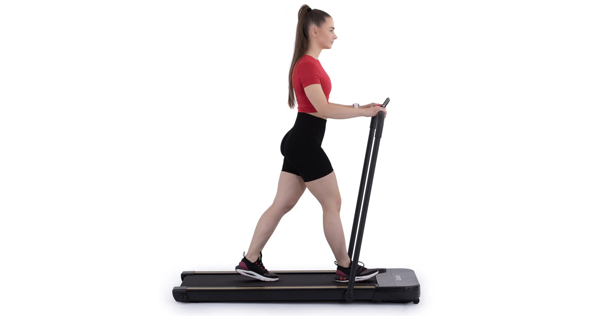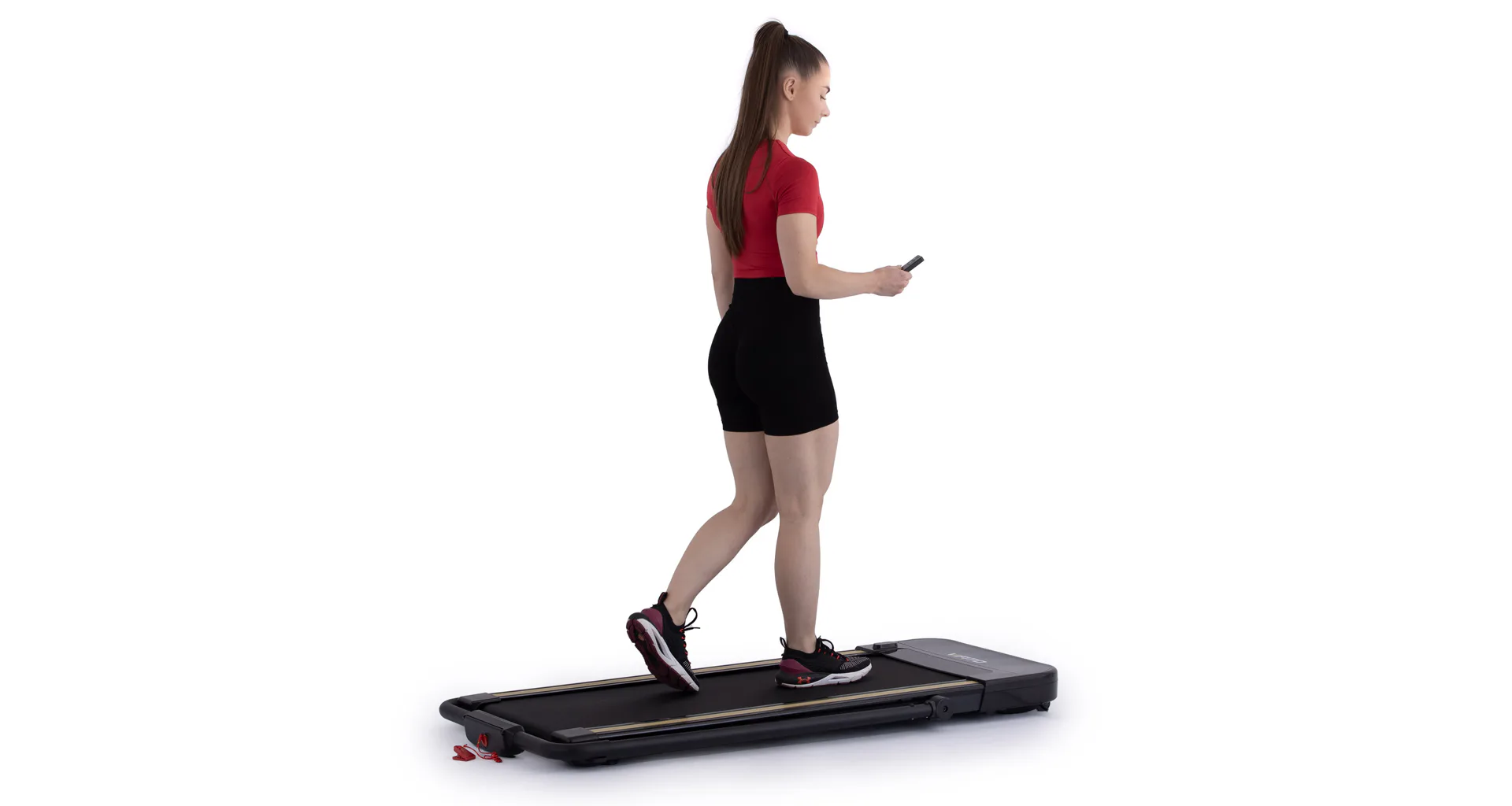 Rychlost běhu si můžete nastavovat během tréninku ručně tlačítky na panelu, nebo pomocí dálkového ovladače. Bezpečnost při chůzi/běhu zaručuje sklopné madlo, na kterém se zároveň nachází ovládací konzole.