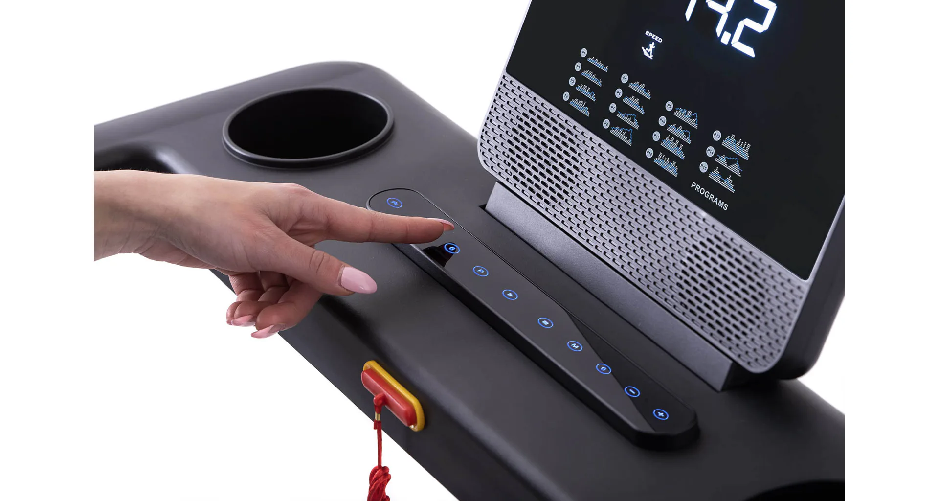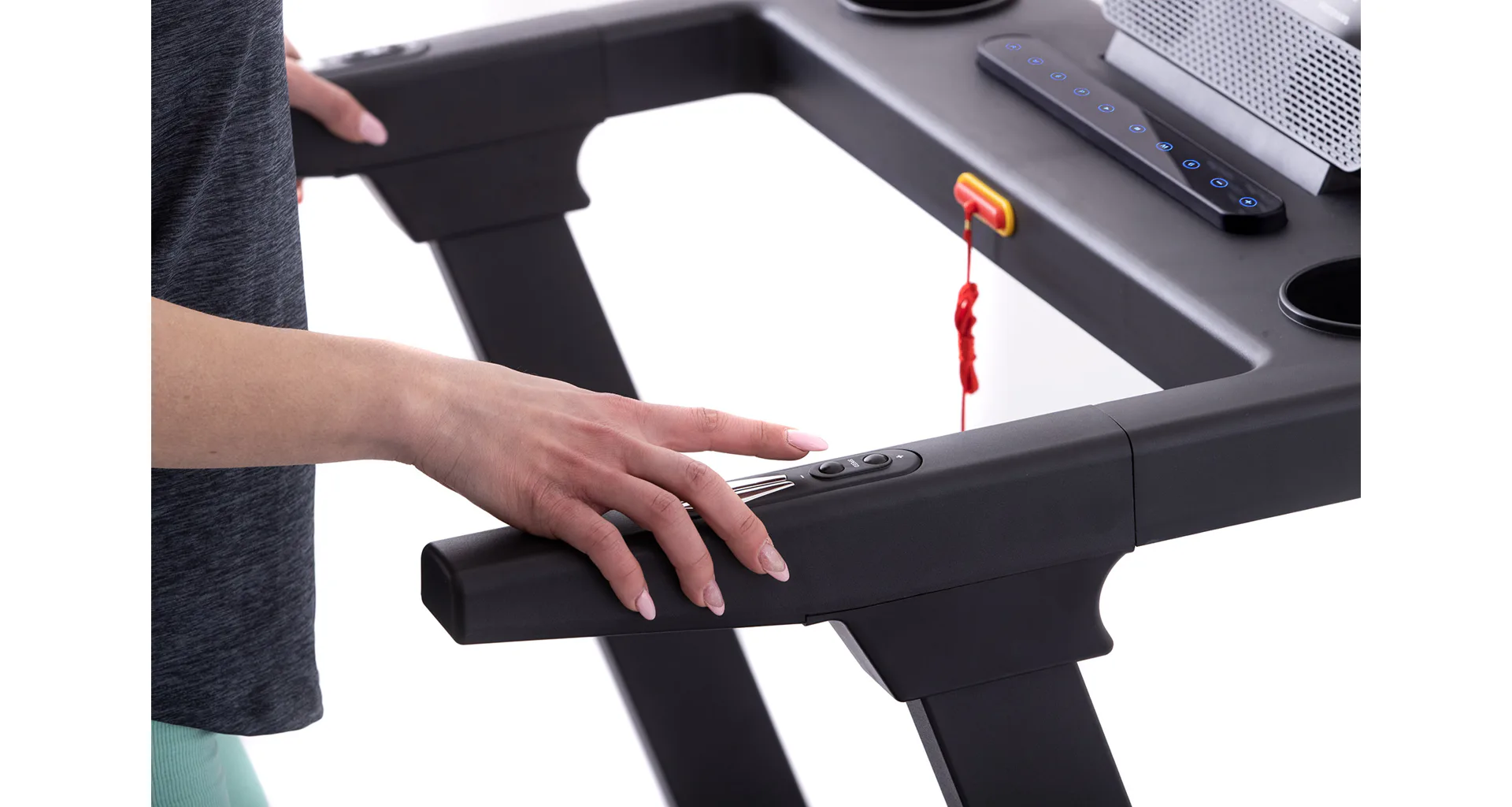 Tento model je vybaven zabudovanými tlačítky pro nastavení rychlosti a sklonu i na postranních madlech. Díky tomu si můžete maximálně užít Váš trénink.