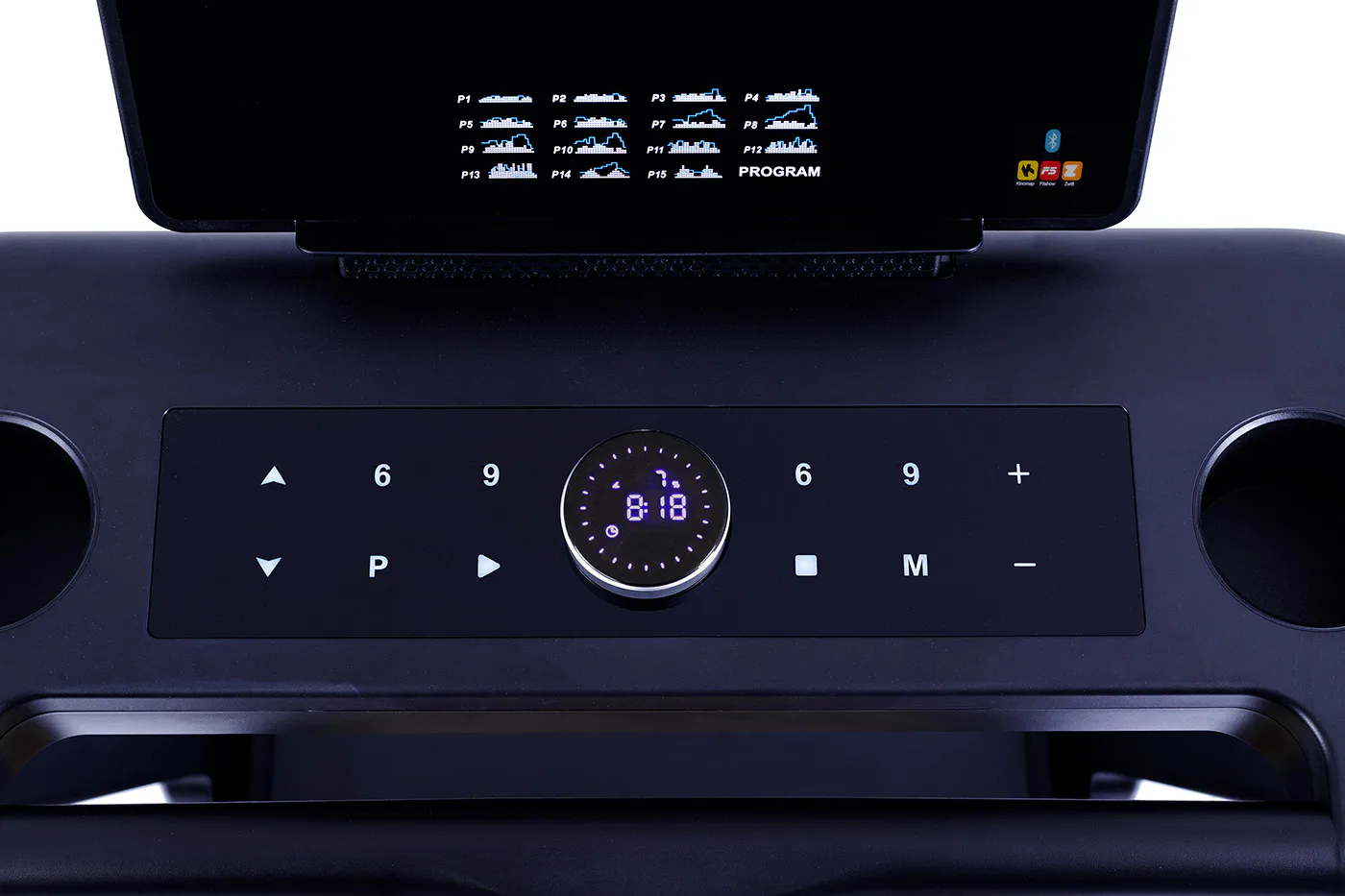 Rychlost běhu a sklon si můžete nastavovat během tréninku ručně tlačítky, případně si můžete si vybrat některý z 15 přednastavených tréninkových programů. Pro maximální efektivitu tréninku můžete využít měření tepové frekvence skrz dlaňové snímače tepové frekvence.