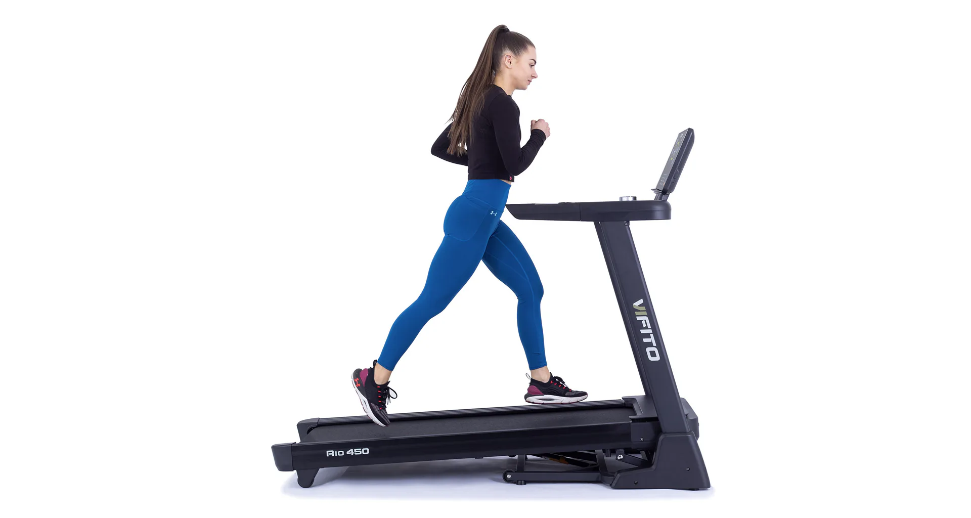 VIFITO Rio 450 nabízí prostornou běžeckou plochu s rozměry 130 x 48 cm. Tato plocha pro běh bohatě postačí lidem přibližně do 175 cm, kde poskytuje dostatek prostoru pro pohodlný a přirozený krok.