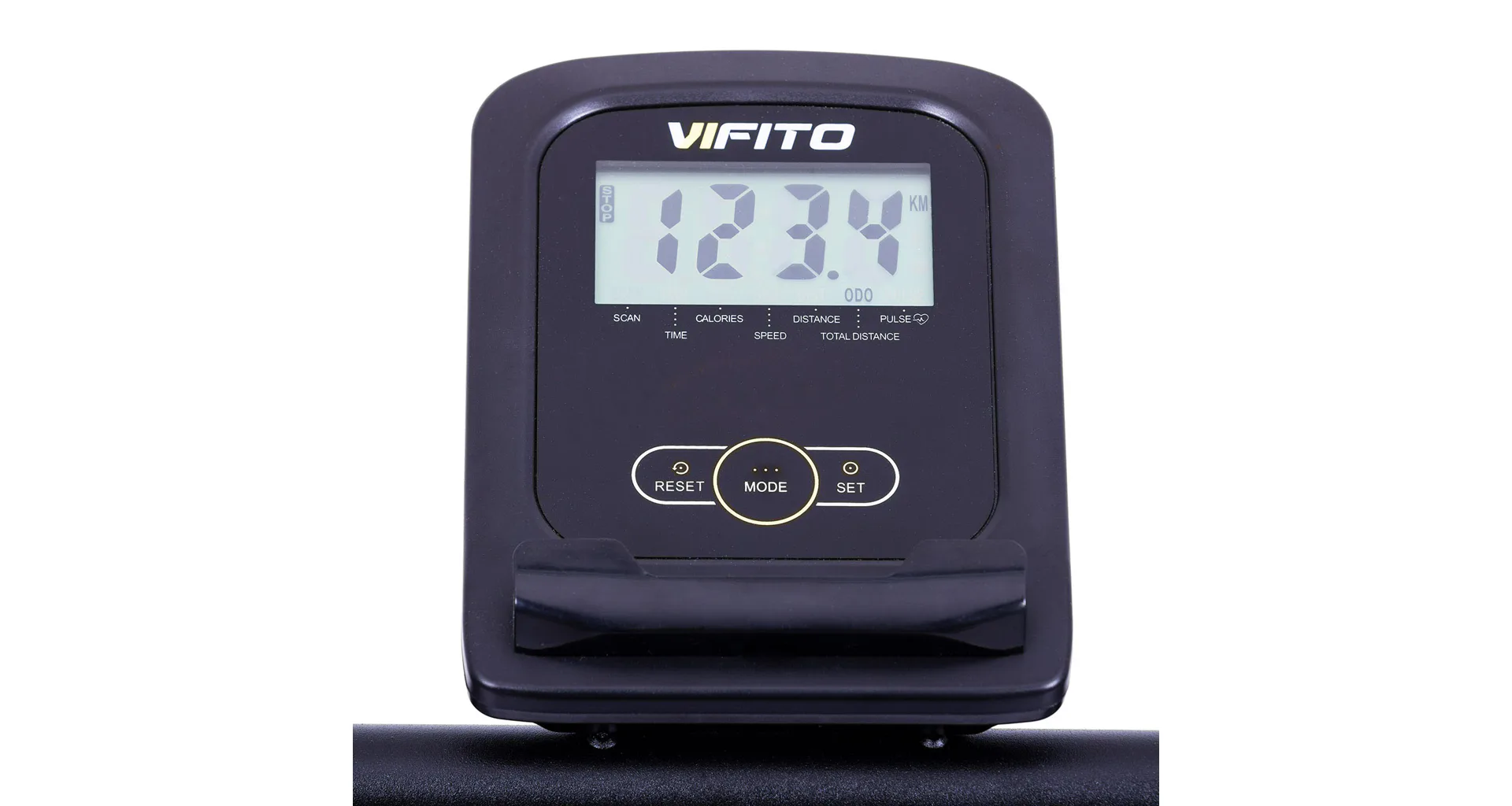 Pás VIFITO Rio 5 je vybavený přehledným počítačem s LCD displejem, který zobrazuje čas běhu, rychlost, splálené kalorie, vzdálenost a celkovou uběhnutou vzdálenost.