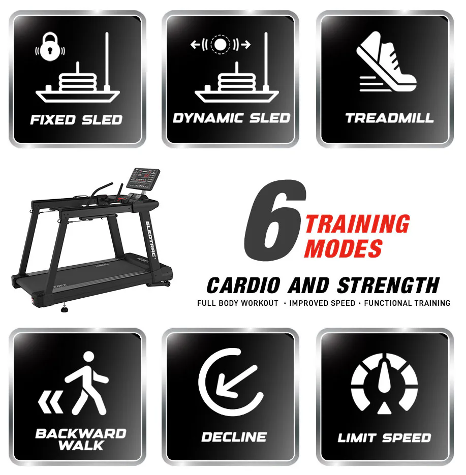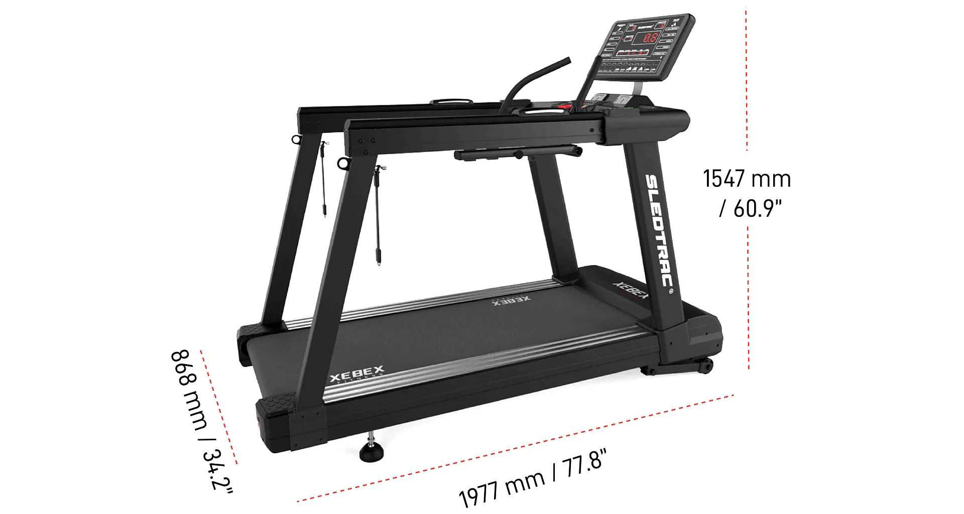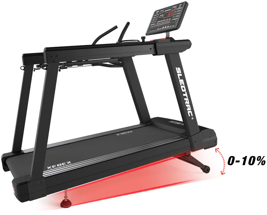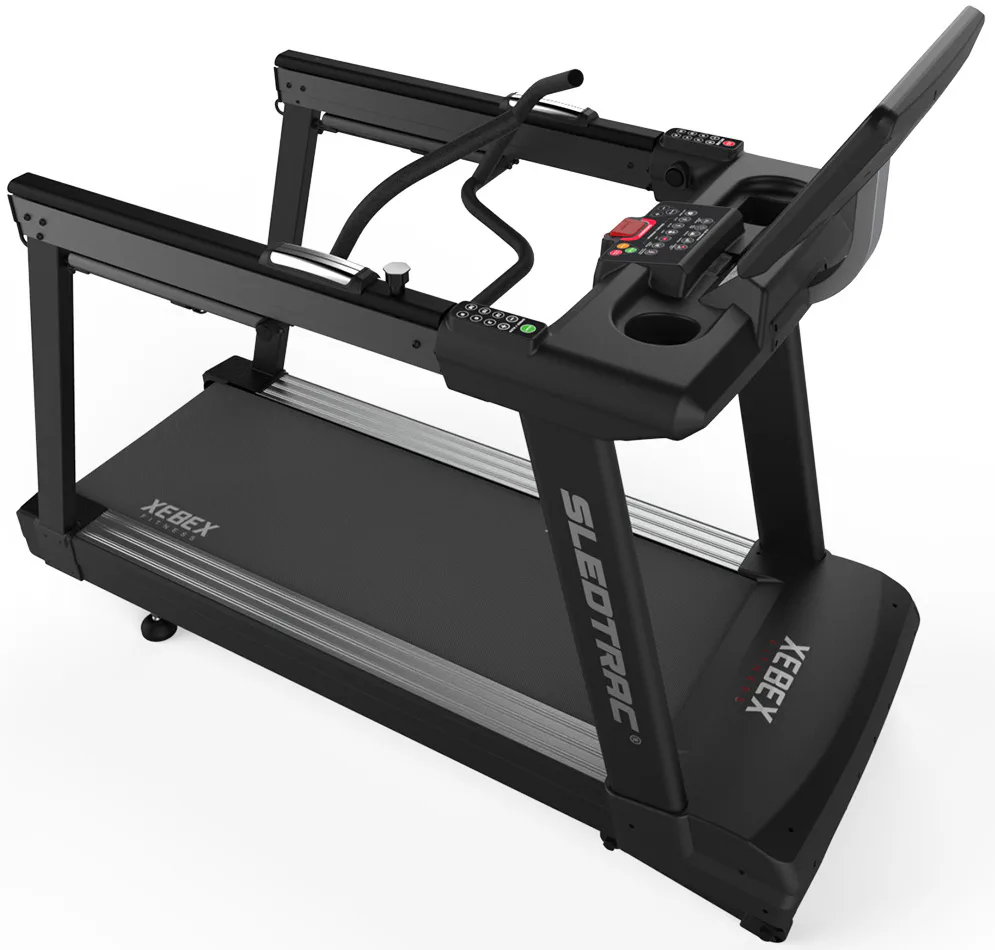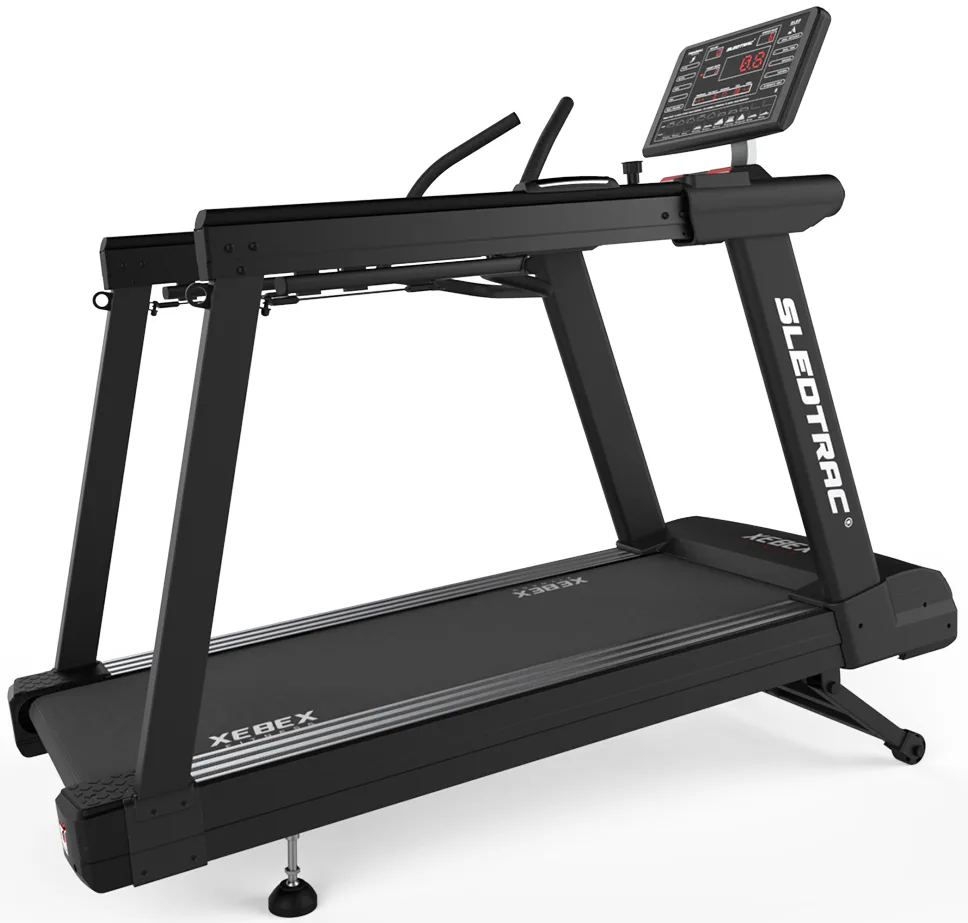 XEBEX SledTrac 6000 je profesionální běžecký pás pro ty nejnáročnější zákazníky, který je poháněn takřka nesmrtelným profesionálním AC motorem o síle 3 HP (koně) a odporu až neuvěřitelných 1500 Wattů. Předností XEBEX SledTrac 6000 je možnost běhu, chůze, tlačení saní, elektronického sklonu až do 10% úhlu, již zmíněný profesionální motor, masivní konstrukce a velmi prostorná běžecká plocha. Díky tomu můžete perfektně simulovat, chůzi, běh, tlačení saní na různé způsoby, chůze popředu i pozpátku a mnoho dalších.