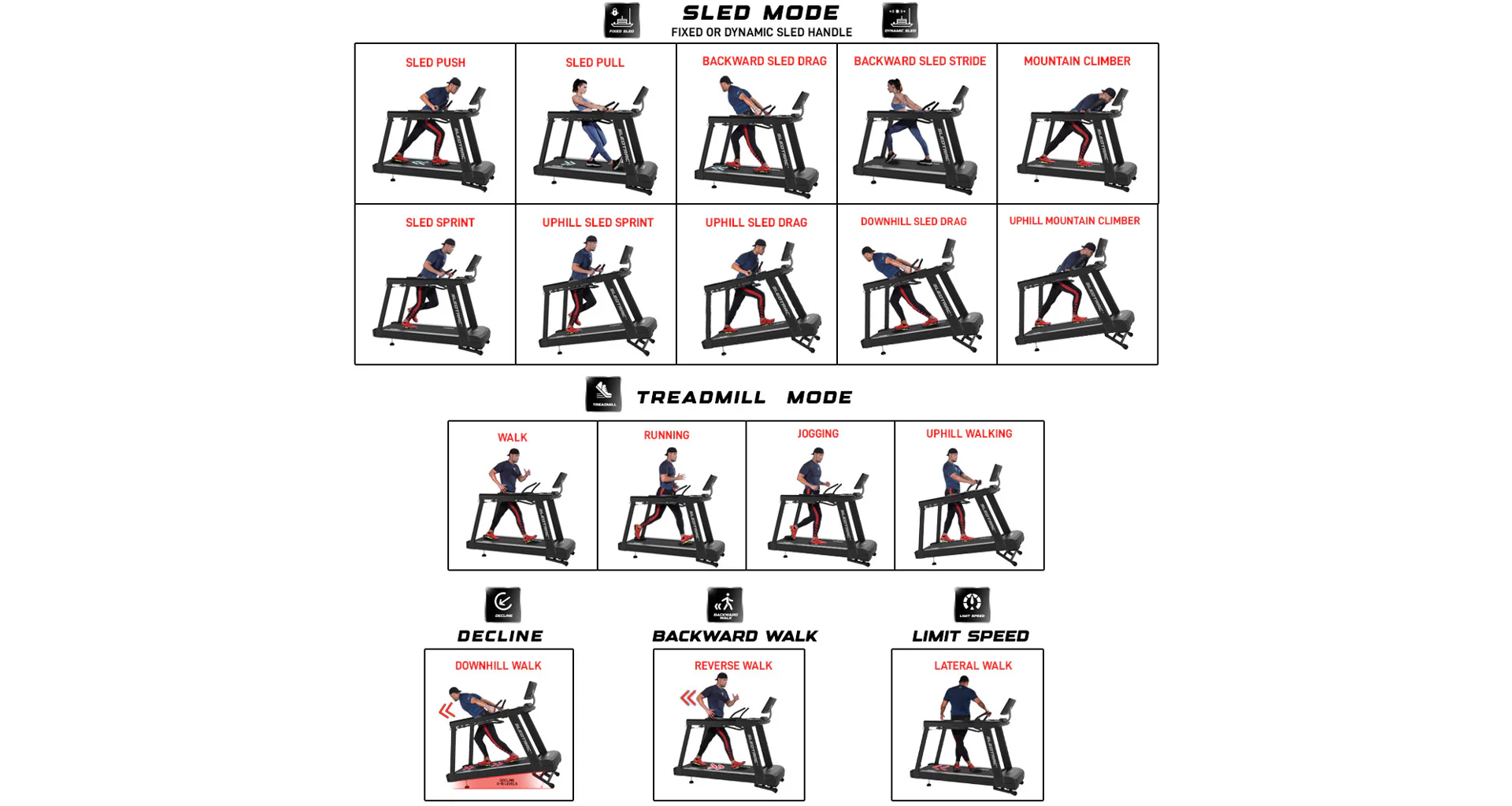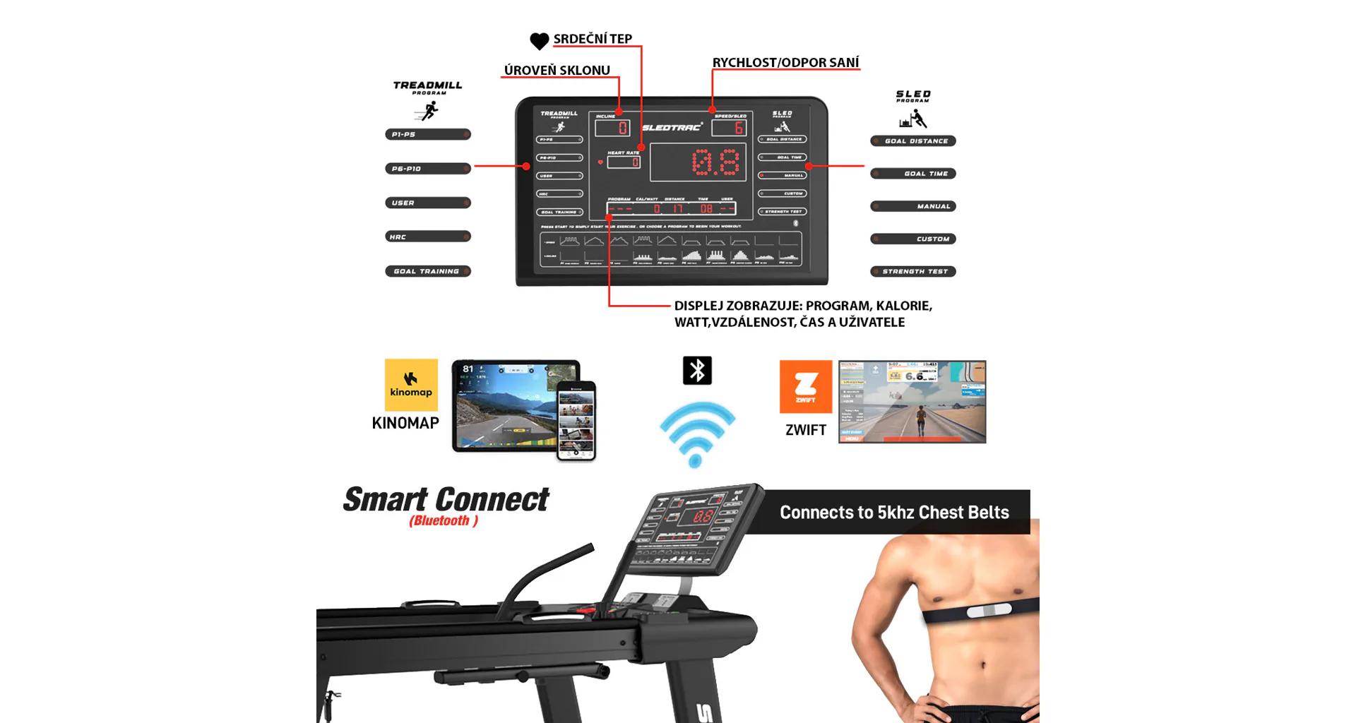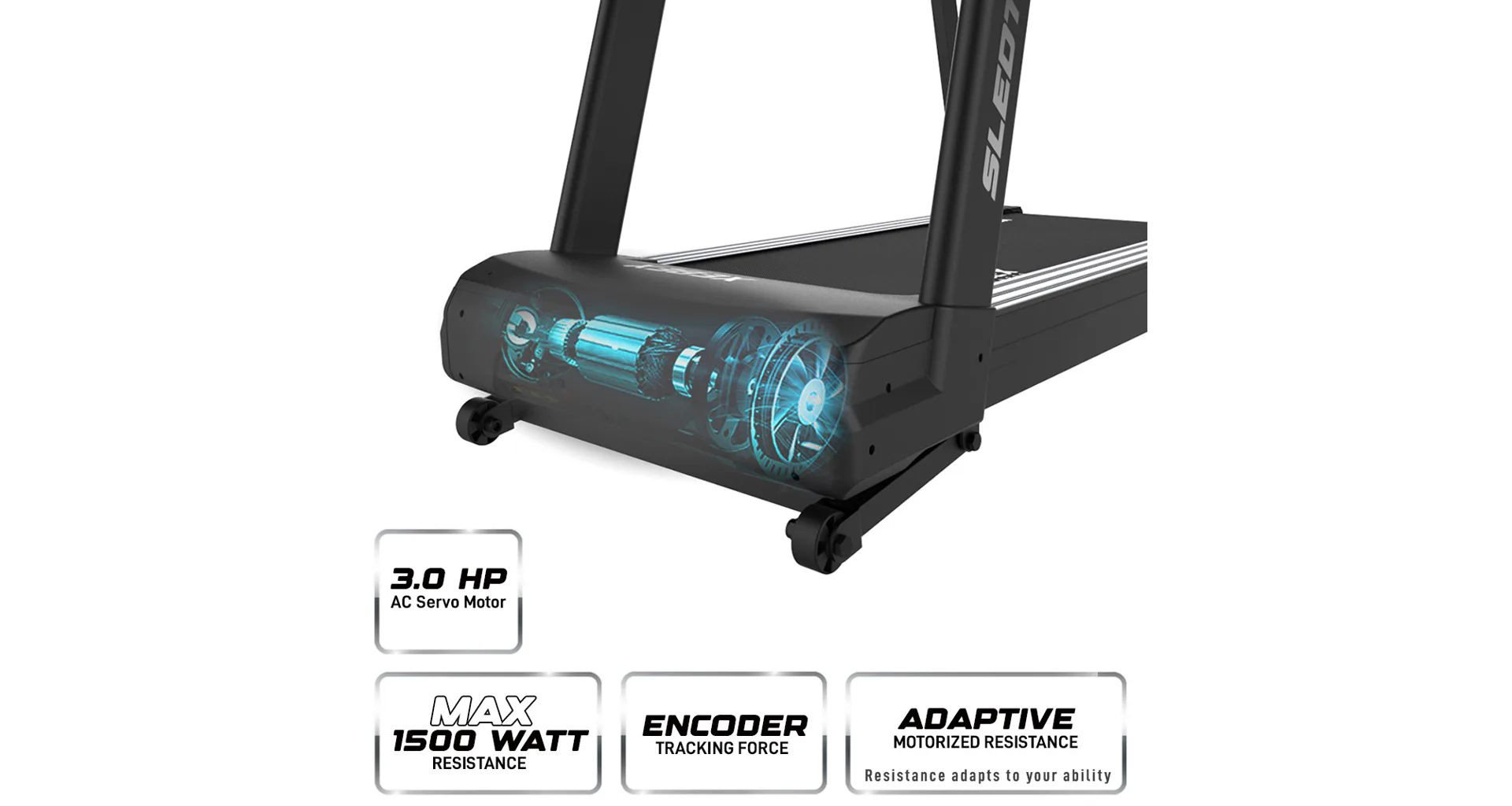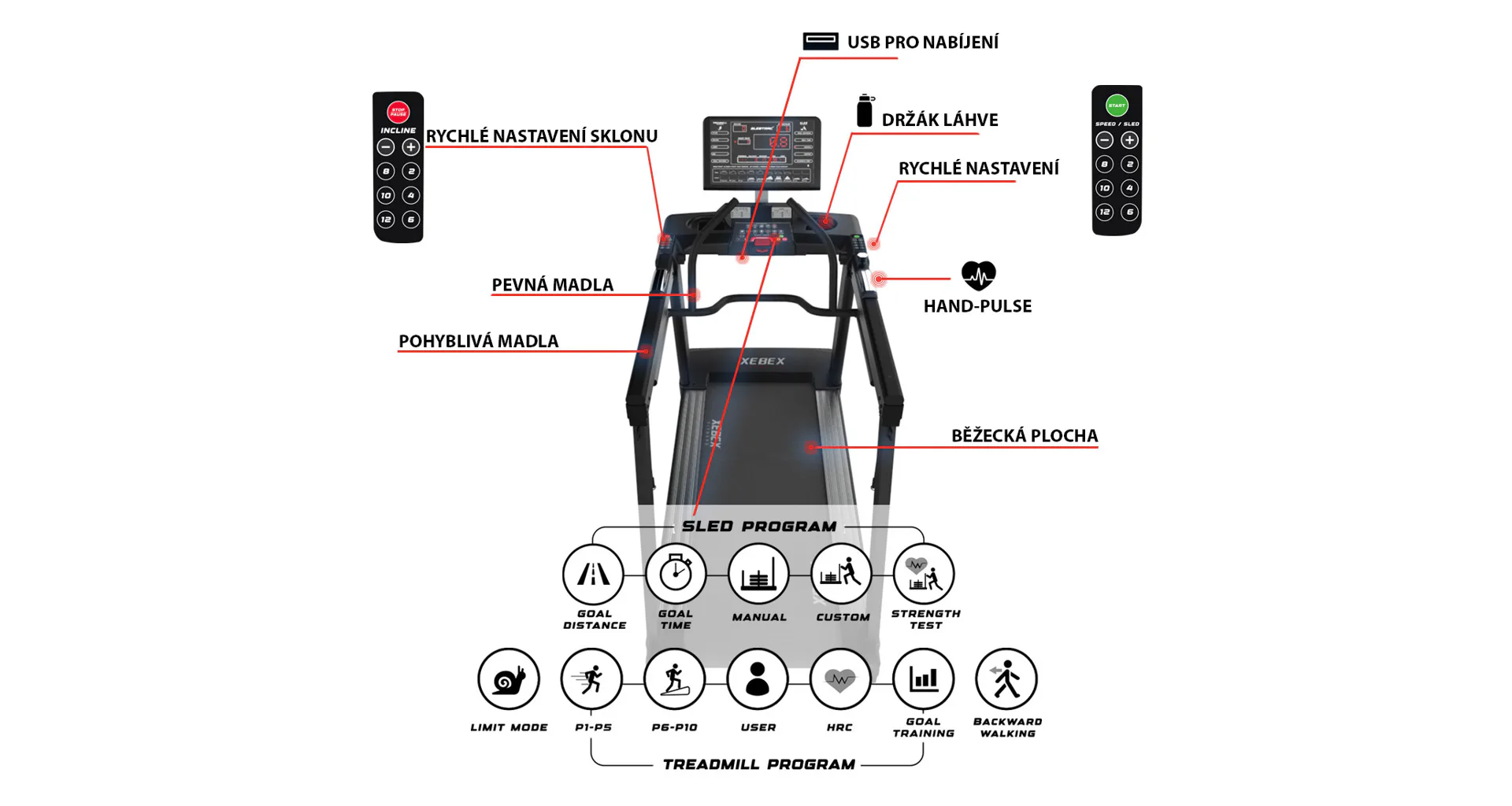 XEBEX SledTrac 6000 je profesionální běžecký pás pro ty nejnáročnější zákazníky, který je poháněn takřka nesmrtelným profesionálním AC motorem o síle 3 HP (koně) a odporu až neuvěřitelných 1500 Wattů. Předností XEBEX SledTrac 6000 je možnost běhu, chůze, tlačení saní, elektronického sklonu až do 10% úhlu, již zmíněný profesionální motor, masivní konstrukce a velmi prostorná běžecká plocha. Díky tomu můžete perfektně simulovat, chůzi, běh, tlačení saní na různé způsoby, chůze popředu i pozpátku a mnoho dalších.