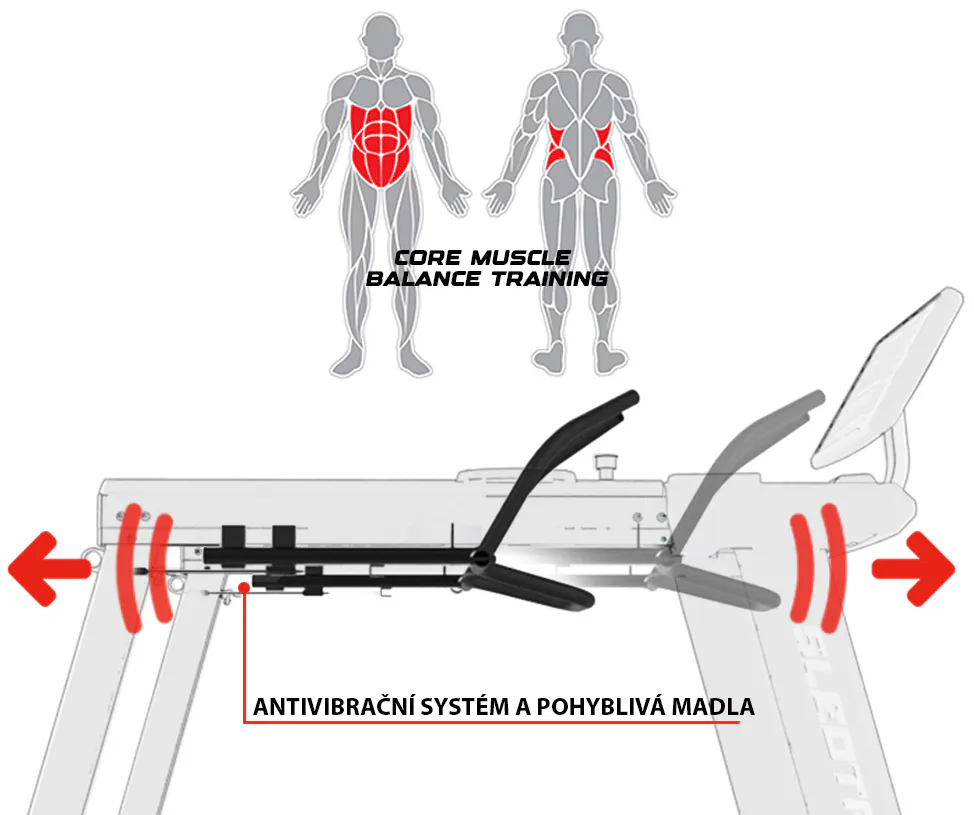 Madla saní mohou být díky elastickému bungee lanu pohyblivé, což perfektně simuluje tlačení saní a podtrhuje propracovanost tohoto trenažéru.