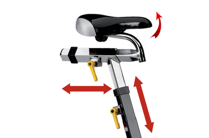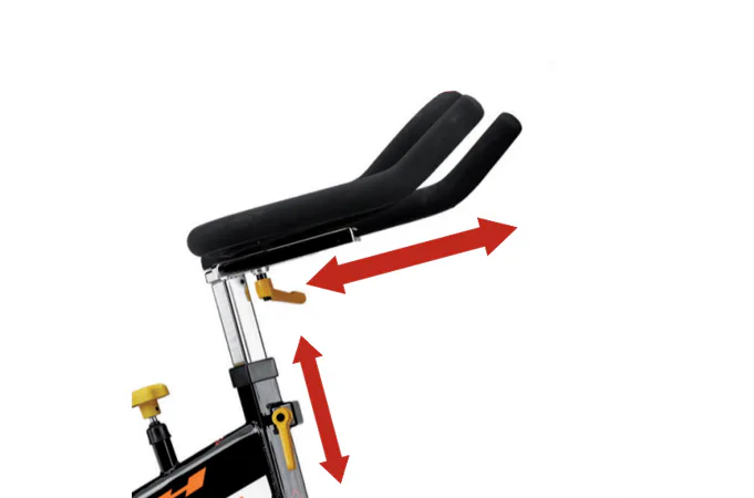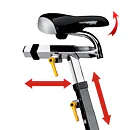Kvalitní ergonomicky tvarované sedlo a triatlonová řídítka jsou nastavitelná v horizontálním i vertikálním směru + sklon sedla.