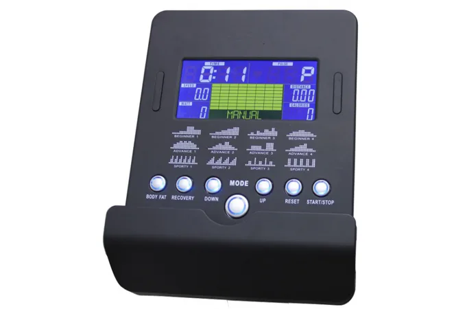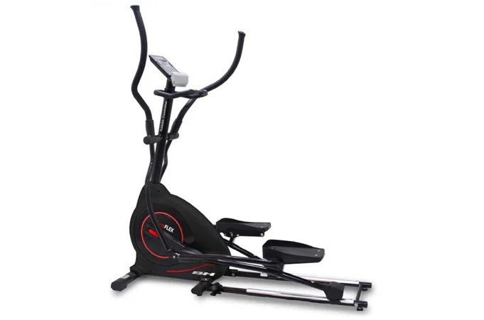 Eliptický trenažér BH Fitness EesyFlex je vybaven přehledným počítačem s držákem na tablet/smartphone, senzory na měření tepové frekvence, transportními kolečky a vyrovnávači nerovnosti.