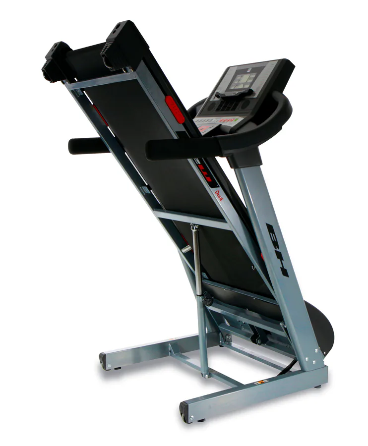 Běžecký pás BH Fitness F2W DUAL disponuje snadno ovladatelným počítačem, držákem na lahev, senzory pro měření tepové frekvence a transportními kolečky. Po tréninku trenažér snadno a rychle složíte.