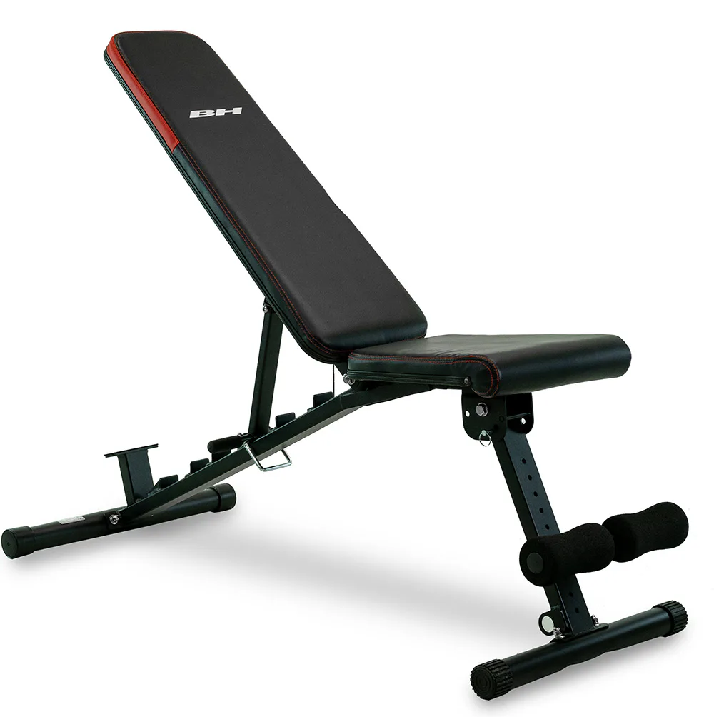BH FITNESS Multiposition bench je polohovací posilovací lavice vhodná především pro cvičení s jednoručními činkami, díky sklopení zádové opěrky do negativního sklonu se změní v šikmou lavici pro cvičení břišních svalů. Ocelová konstrukce z odbélníkových profilů, odolné čalounění a mimořádně všestranné použití díky velkému rozsahu polohování opěrky a pěnových válců.