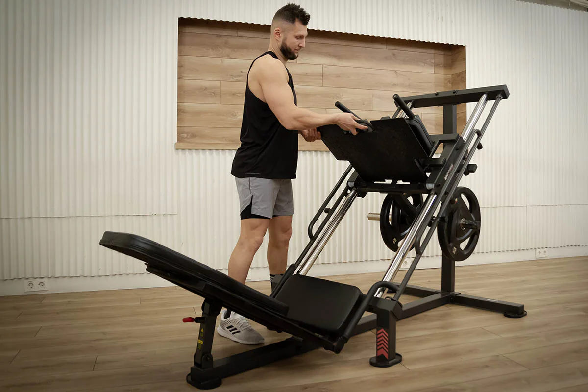 Posilovací stroj BH Fitness Hack Squat / Leg Press je stroj z lehce komerční řady známé evropské značky určený k posilování všech svalů dolních končetin a hýždí. Díky vedenému pohybu je cvičení bezpečné a minimálně zatěžujete kloubní aparát a záda.
