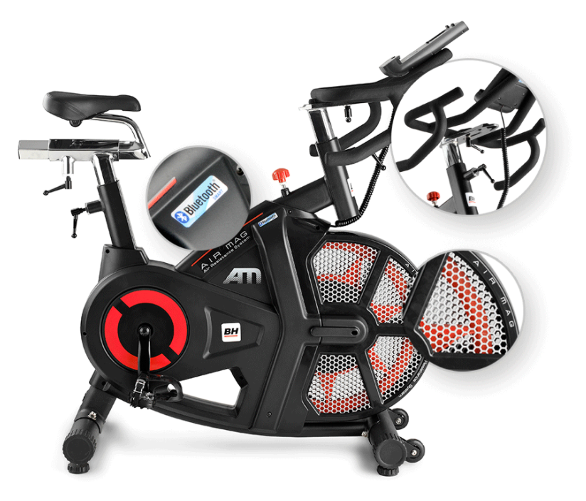 BH FITNESS i.Air Mag FTMS je inovativní cyklotrenažér s moderním designem určený pro intenzivní trénink, který ocení jak začínající, tak nároční úživatele, především se zájmem o triatlon a podobné vytrvalostní sporty.