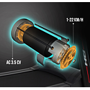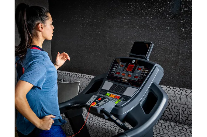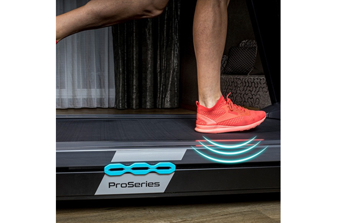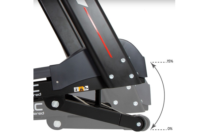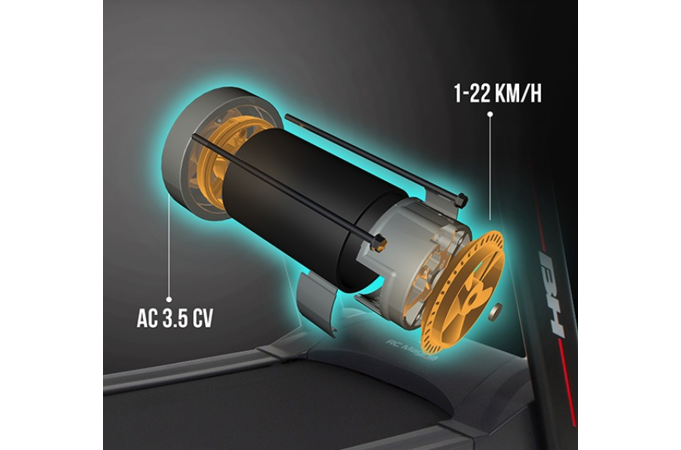 Trenažér má velmi kvalitní AC motor s maximálním výkonem 5HP (trvalý výkon 3,5 HP/2,57 kW). Rychlost lze upravovat v rozmezí 1-22 km/h. Prostorná běžecká plocha s rozměry 55 x 155 cm je vybavena kvalitním tlumícím systémem Flex a SmartKonik. Sklon je elektronicky nastavitelný do 15 %.