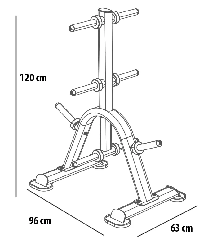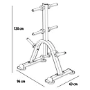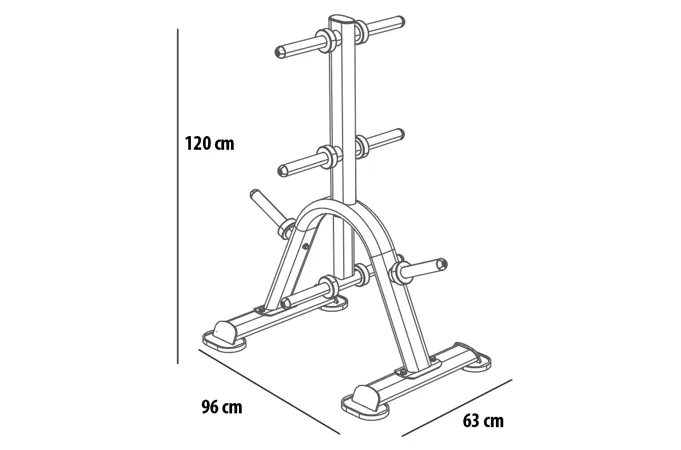 Profesionální stojan na kotouče BH FITNESS L860BB Plate Rack umožňuje bezpečné a pohodlné uložení olympijských kotoučů na 8 trnů s průměrem 50 mm s praktickým gumovým dorazem, který zabraňuje poškození laku. Podlahu před poškrábáním chrání praktické gumové nohy.