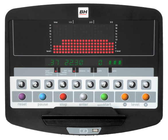 Běžecký pás BH FITNESS LK5500 MED disponuje snadno ovladatelným počítačem, držákem na lahev, senzory pro měření tepové frekvence a transportními kolečky.