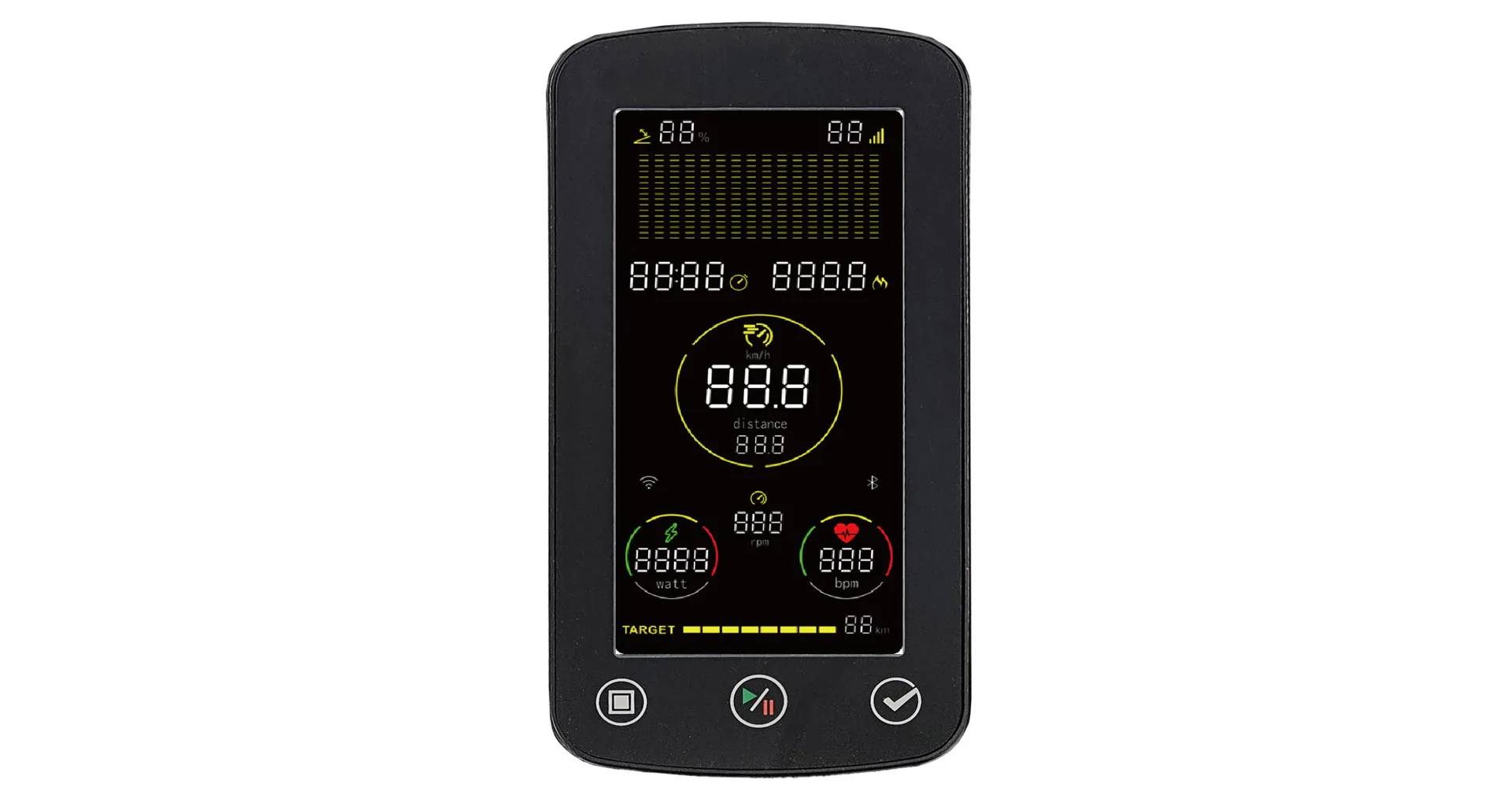 Součástí trenažéru je barevný LCD displeji, který zobrazuje všechny důležité údaje. Nastavit si můžete také 3 přednastavené programy.