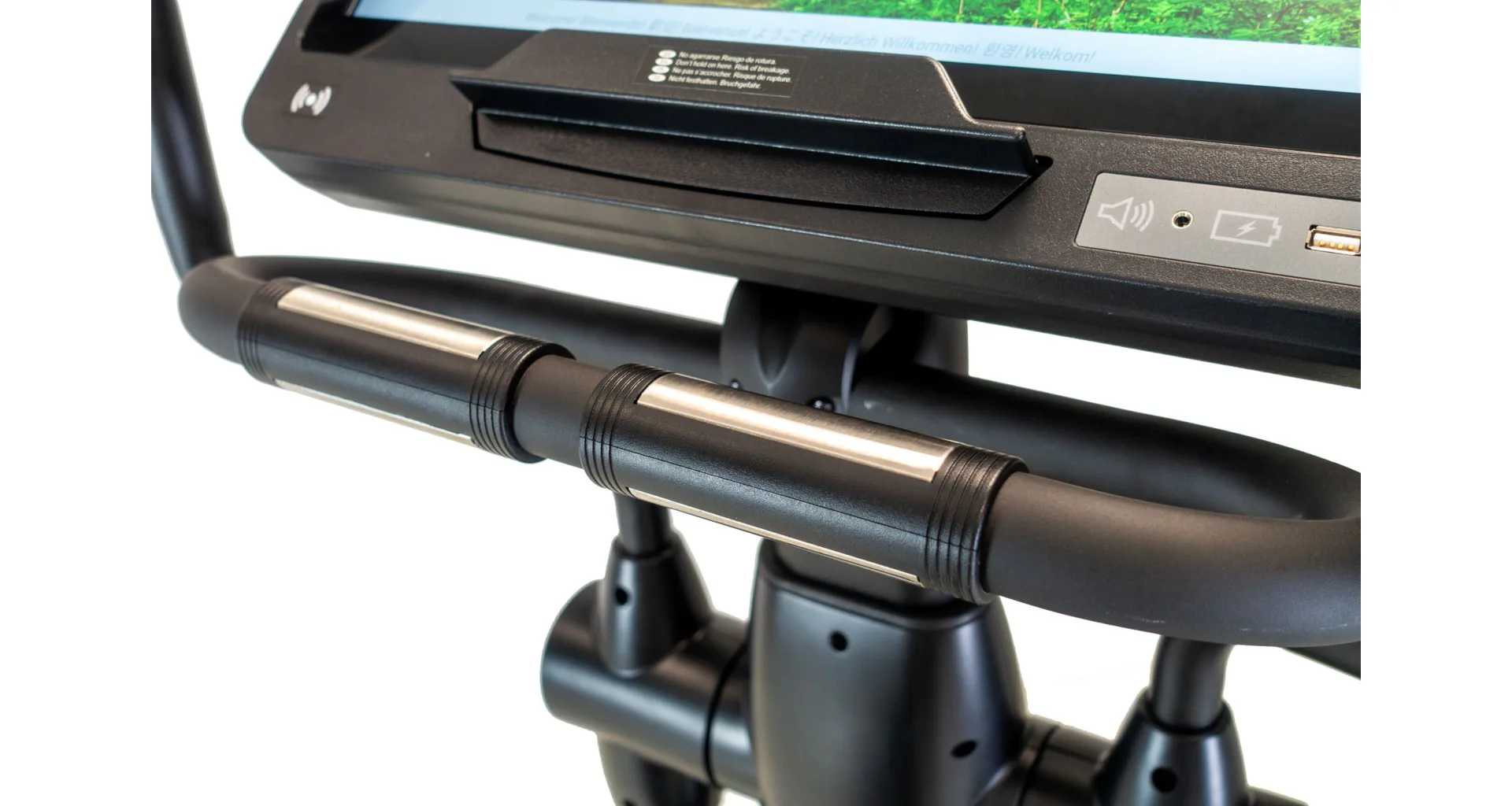 Přehledný počítač s 16" displejem SmartFocus je vybaven bohatou programovou nabídkou a poskytuje všechny potřebné informace v průběhu tréninku. Dále disponuje senzory pro měření tepové frekvence, tlačítky pro rychlé nastavení tréninkových dat, držákem na lahev, transportními kolečky a vyrovnávači nerovnosti.