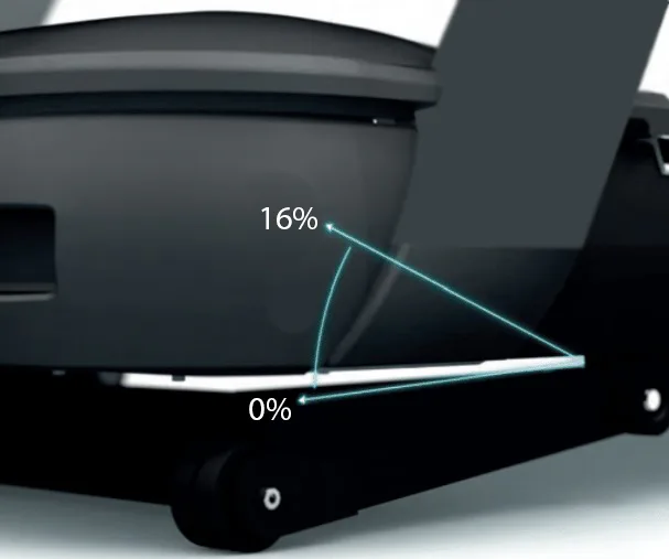 Díky střídavému AC motoru s maximálním výkonem 8 HP (trvalý výkon 6 HP), který je určen do komerčního provozu, umožňuje stroj dlouhodobě využívat rychlost v rozmezí 0,8 - 26 km/h při sklonu od 0% do 16%. Prostorná, odpružená běžecká plocha má rozměry 58 x 160 cm.