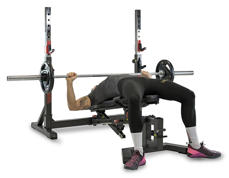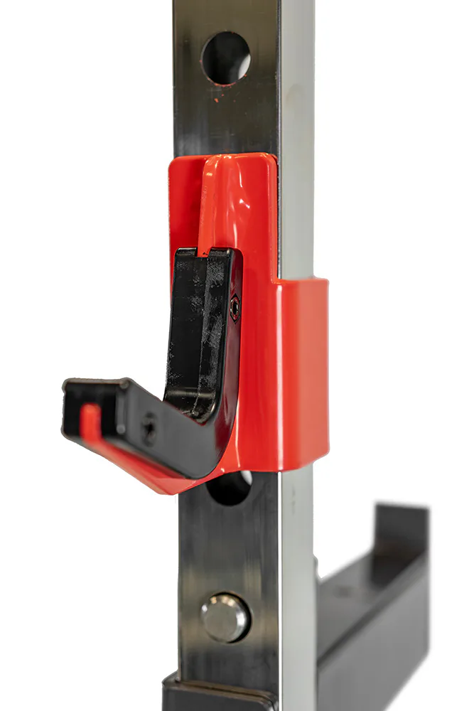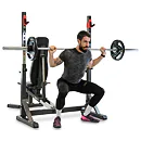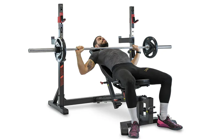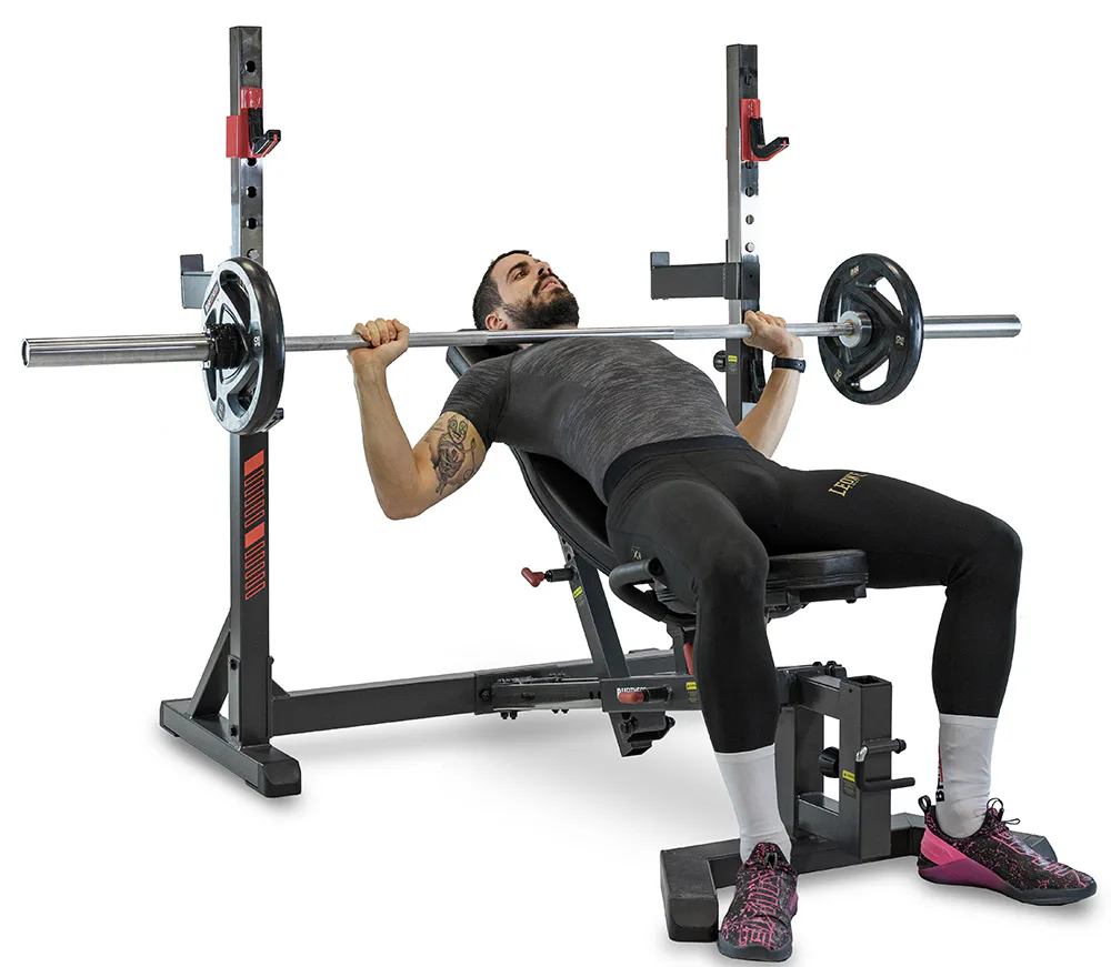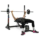 Nastavitelné držáky osy a bezpečnostní dorazy zajišťují vysokou variabilitu, díky čemuž si na lavici zacvičí opravdu každý.