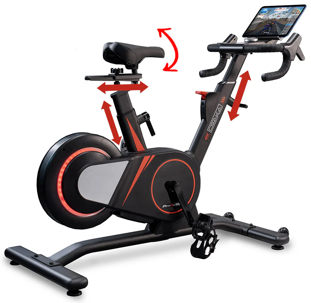 BH Fitness Osaka poskytuje výbornou ergonomii, kterou lze individuálně optimalizovat. Sedlo lze nastavit ve vertikálním i horizontálním směru včetně polohování sklonu, řídítka lze upravit ve vertikálním směru Cyklotrenažér je vybaven novým systémem konektivity i.Concept 3.0 s protokolem FTMS, což znamená, že je v počítači integrovaný Bluetooth modul umožňující napárování i nejmodernějších tréninkových aplikací. Nejoblíbenější jsou aplikace Kinomap, Zwift, MyHomeFit, které nabízejí reálně se posouvající nafilmované trasy, trasy podle GPS, nebo další programy s tím, že zátěž se mění automaticky podle toho, zda vede trasa do kopce nebo z kopce. Využít můžete i aplikaci Strava, díky které si můžete zaznamenávat své pokroky.