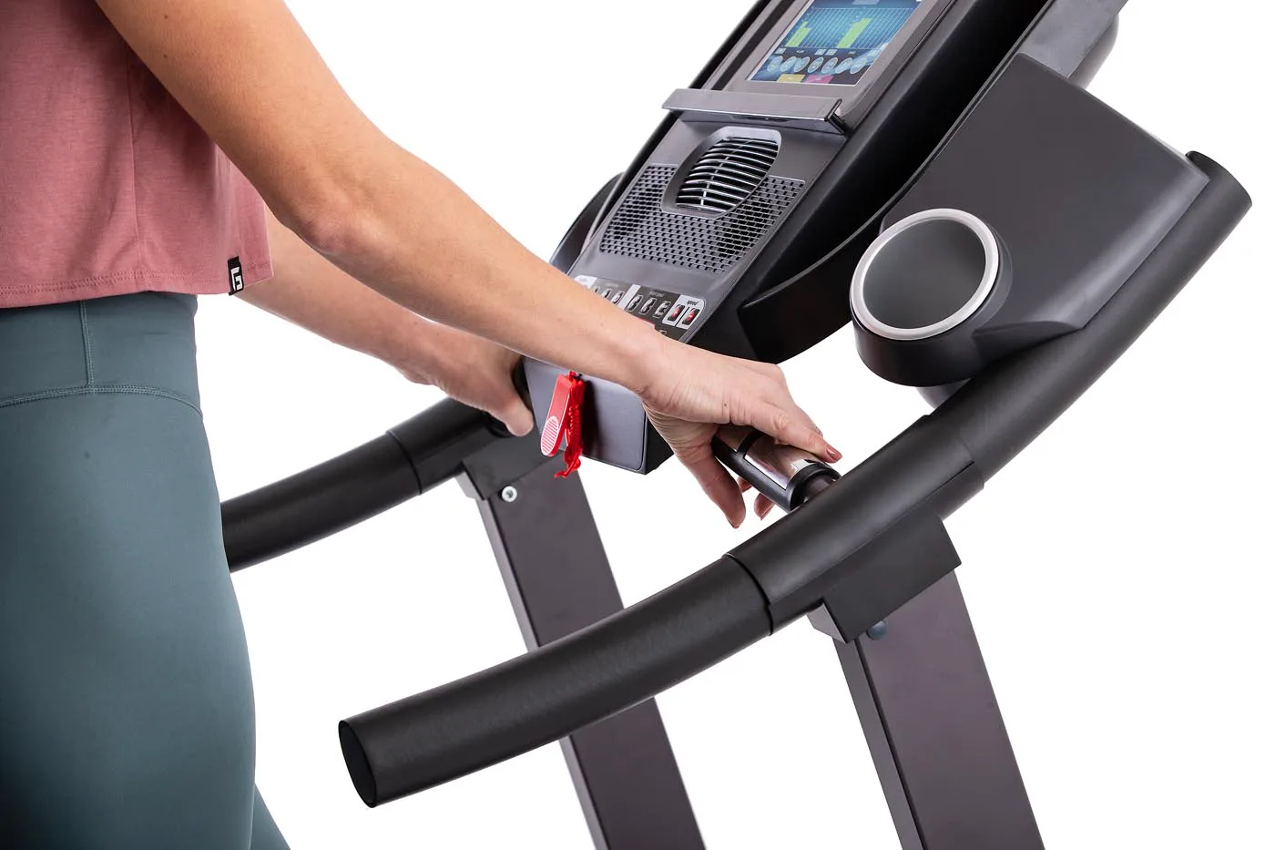 Díky možnosti sklopení běžecké plochy do vertikální polohy vám stroj zabere minimum místa. Systém složení je velmi jednoduchý a zvládne to každý.