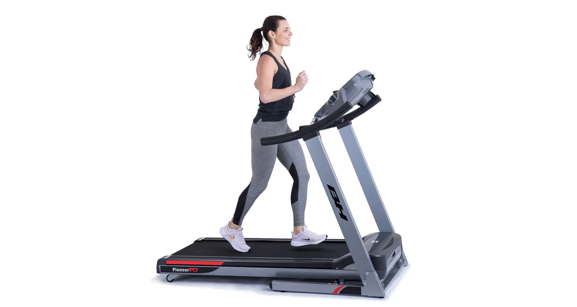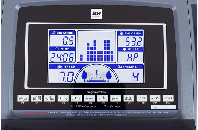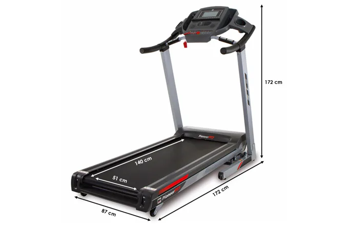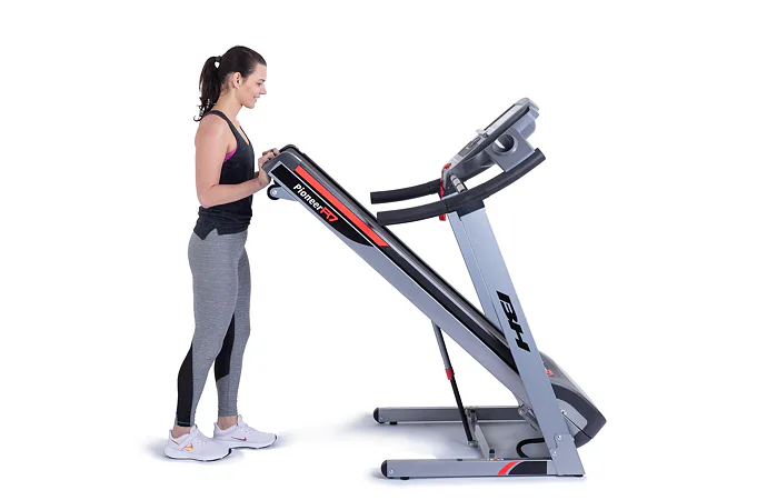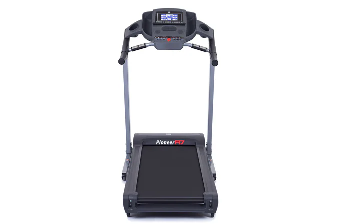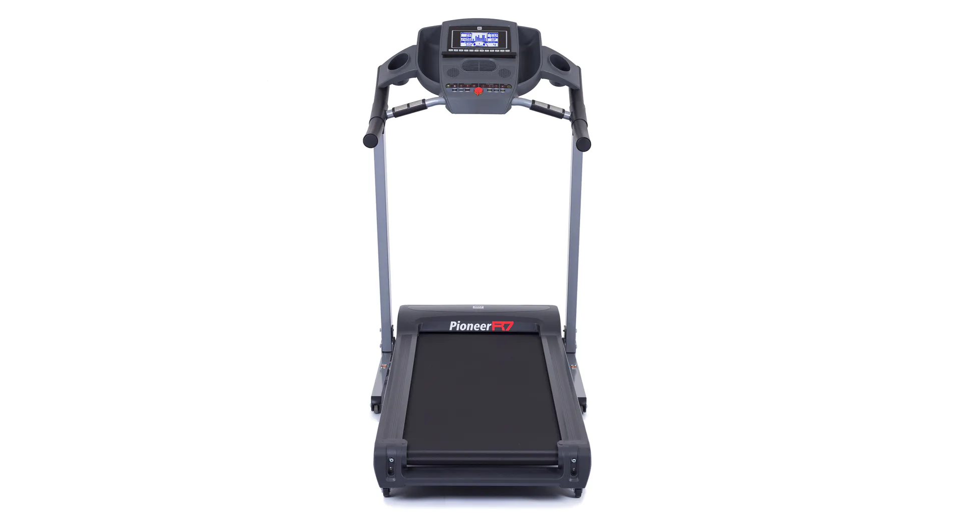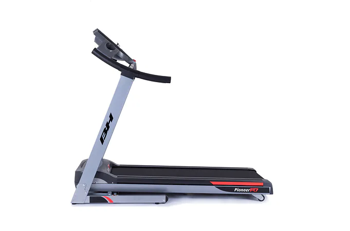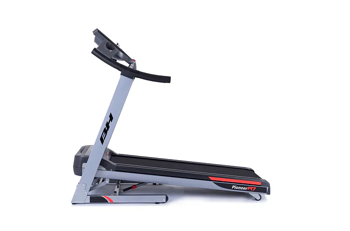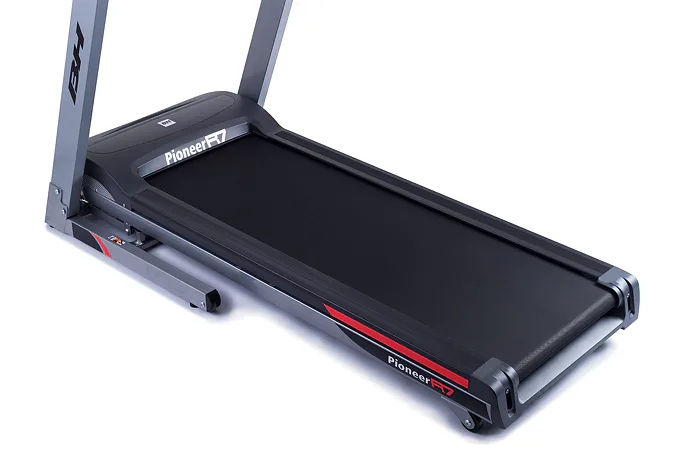 Běžecký pás BH Fitness PIONEER R7 disponuje počítačem s LCD displejem, držákem na lahev, senzory pro měření tepové frekvence a transportními kolečky. Po tréninku stroj snadno a rychle složíte.