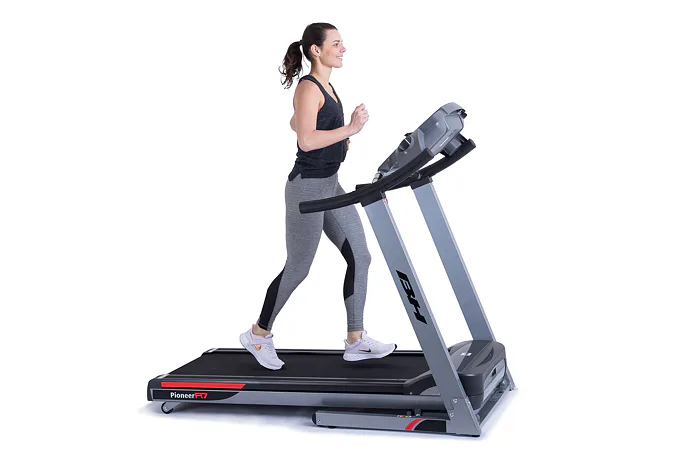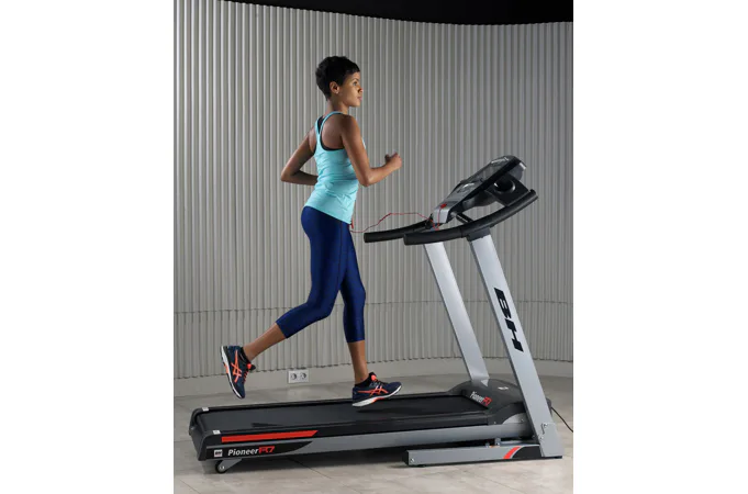 BH Fitness PIONEER R7 je ideální běžecký pás do domácího prostředí, disponuje tichým a výkonným motorem, prostornou běžeckou plochou a přehledným LCD displejem s programy. Je vhodný jak na chůzi, tak pro každého hobby běžce či aktivního sportovce, který potřebuje elegantní řešení domácího tréninku. Trenažér je zařazený v kategorii použití "Intensive", což znamená použití v rozsahu do 20 hodin týdně.