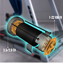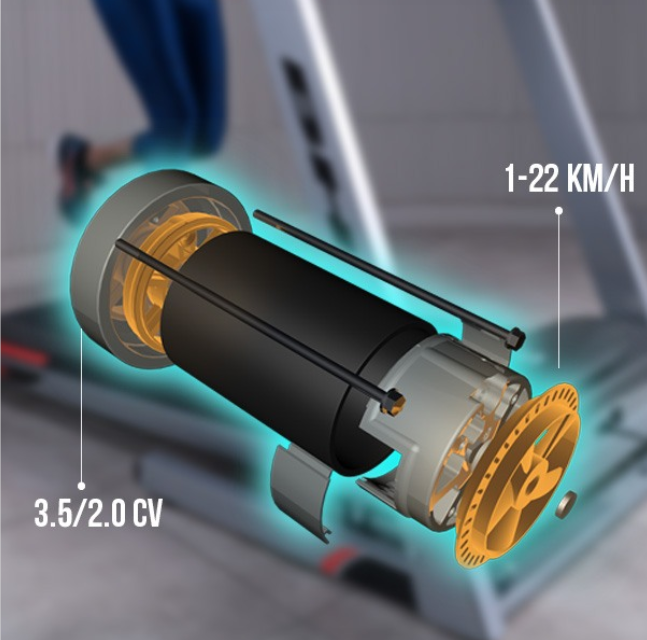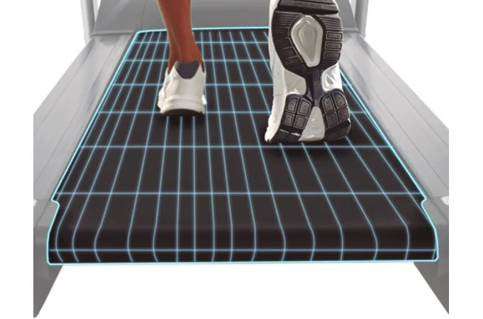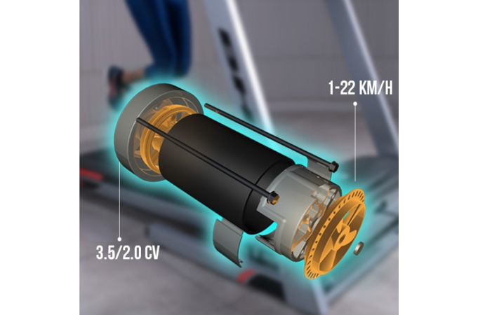 Trenažér má kvalitní a výkonný motor s maximálním výkonem 3,5 HP (2,57 kW) a trvalým výkonem 2,0 HP (1,47 kW). Prostorná běžecká plocha s rozměry 50 x 140 cm je vybavena kvalitním tlumícím systémem SDS (Soft Drop systém) s 6 elastomery a Run +.