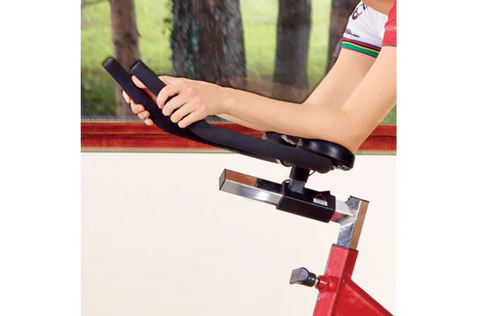 Kvalitní ergonomicky tvarované sedlo a triatlonová řídítka jsou nastavitelná v horizontálním i vertikálním směru + sklon sedla.