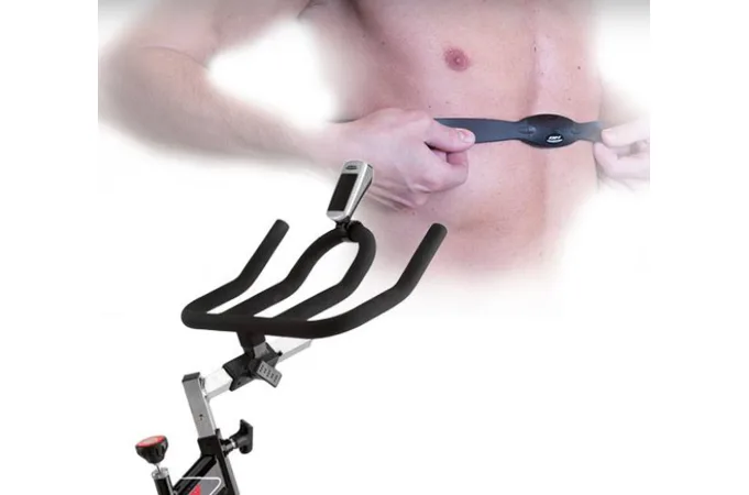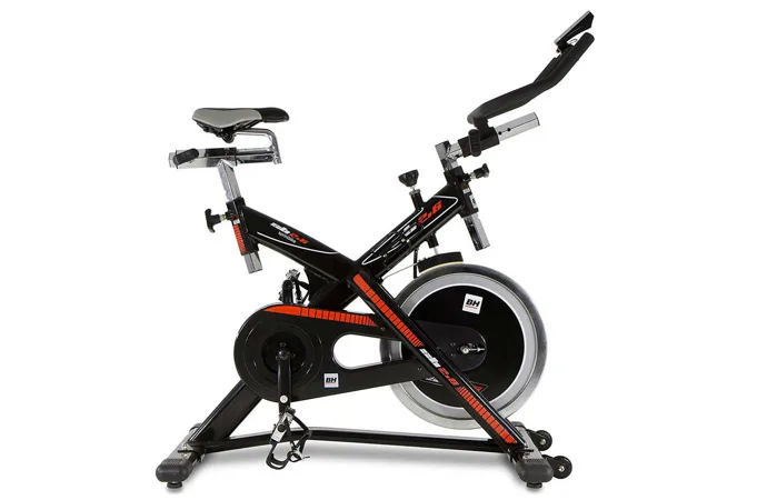 Cyklotrenažér BH Fitness SB2.6 je mimo jiné vybaven přehledným počítačem, držákem na tablet/smartphone, transportními kolečky a vyrovnávači nerovnosti.