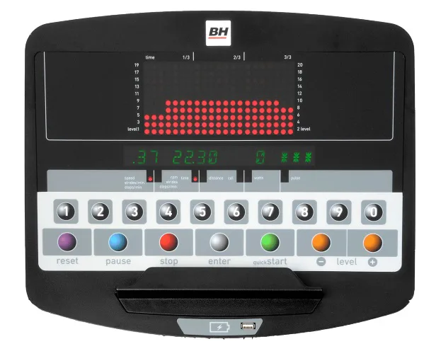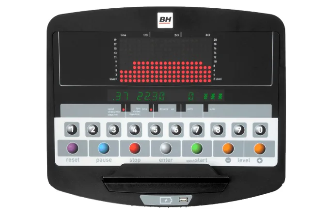 Stepper BH Fitness SK2500 LED je vybaven přehledným počítačem s držákem na tablet, bohatou programovou nabídkou a USB portem. Dále jsou jeho součástí senzory na měření tepové frekvence, držák na lahev, transportní kolečka a vyrovnávače nerovnosti. Integrovaný ventilátor pro osvěžení poskytuje maximální komfort při dlouhém a pravidelném tréninku.