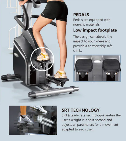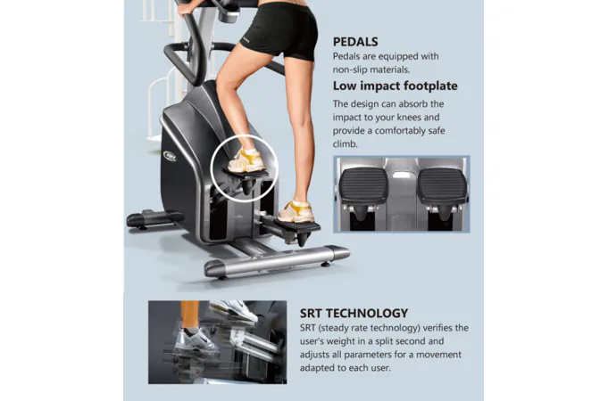 Tento tichý a spolehlivý stroj umí kontrolovat váhu cvičence a podle toho reagovat programem, a to díky technologii SRT (steady rate technology). Odpor je vytvářen elektromagnetickou brzdou s vlastním generátorem a jeho nastavení je možné provádět elektronicky v 20 úrovních.