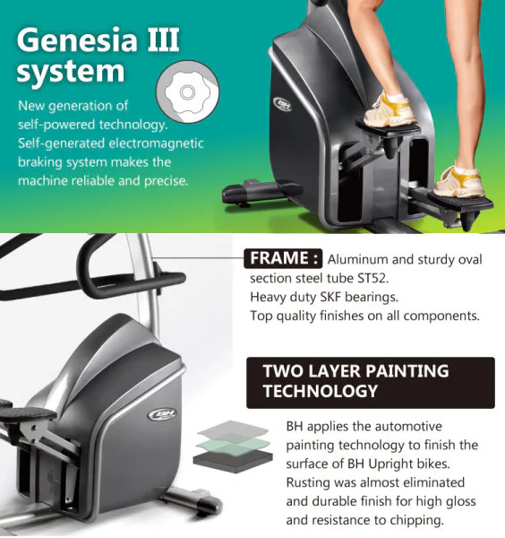 Tento tichý a spolehlivý stroj umí kontrolovat váhu cvičence a podle toho reagovat programem, a to díky technologii SRT (steady rate technology). Odpor je vytvářen elektromagnetickou brzdou a jeho nastavení je možné provádět elektronicky v 20 úrovních.