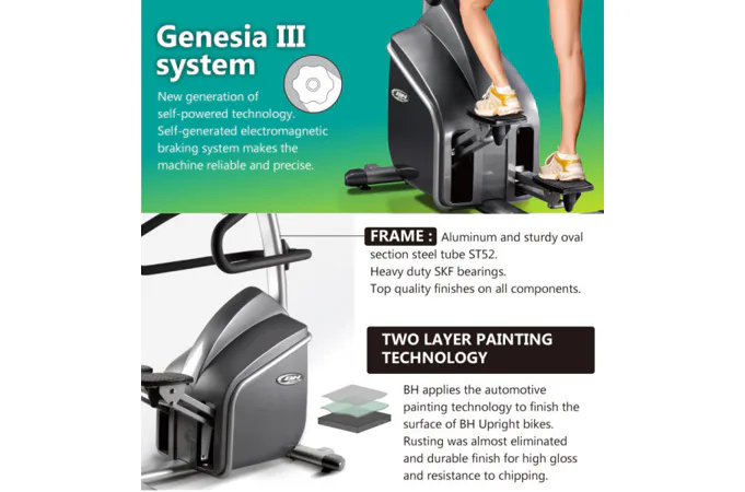 BH Fitness SK2500 SmartFocus 19" je profesionální stepper, který zajišťuje plynulé a tiché šlapání. Trenažér umí kontrolovat váhu cvičence a podle toho reagovat programem. Jedná se o systém SRT konstantní kadence a ve zlomku vteřiny upraví parametry cvičebního programu v souladu s váhou cvičence a jednotlivým programem.