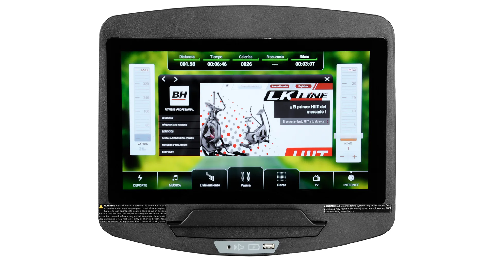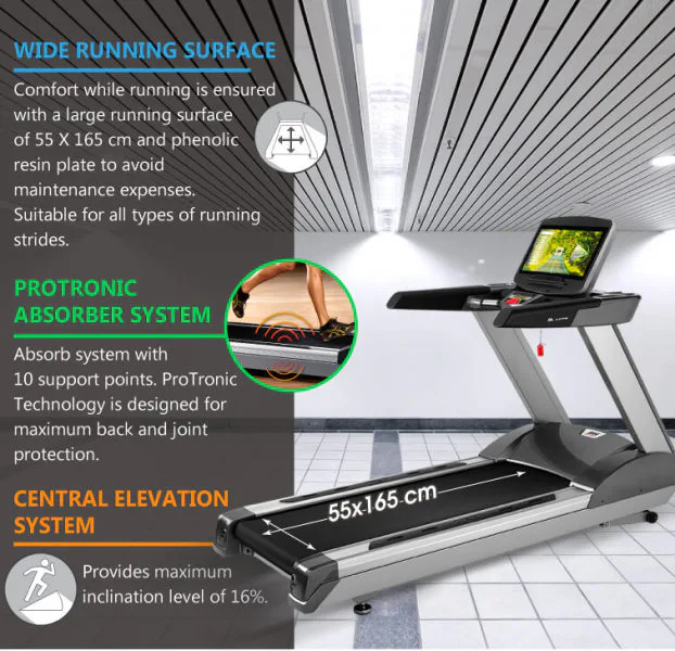 Díky střídavému AC motoru s maximálním výkonem 8 HP (5,96 kW) a trvalým výkonem 6 HP, který je určen i do komerčního provozu umožňuje stroj dlouhodobě využívat rychlost v rozmezí 0,8 - 26 km/h při sklonu do 16 %. Prostorná běžecká plocha s rozměry 55 x 161 cm je vybavena kvalitním odpružením, které šetří vaše klouby i při náročném tréninku.