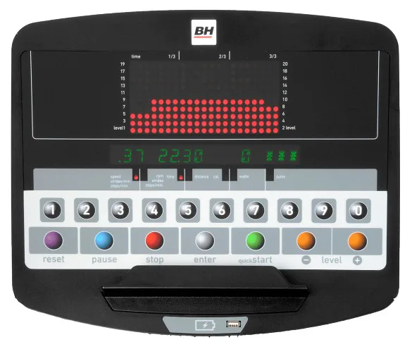 Rotoped BH Fitness SK8000 LED je vybaven přehledným počítačem s držákem na tablet, bohatou programovou nabídkou a USB portem pro napájení vašeho tabletu či telefonu. Dále disponuje senzory na měření tepové frekvence, transportními kolečky a vyrovnávači nerovnosti.
