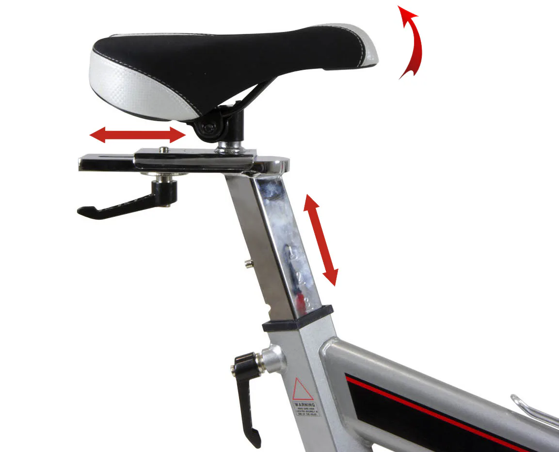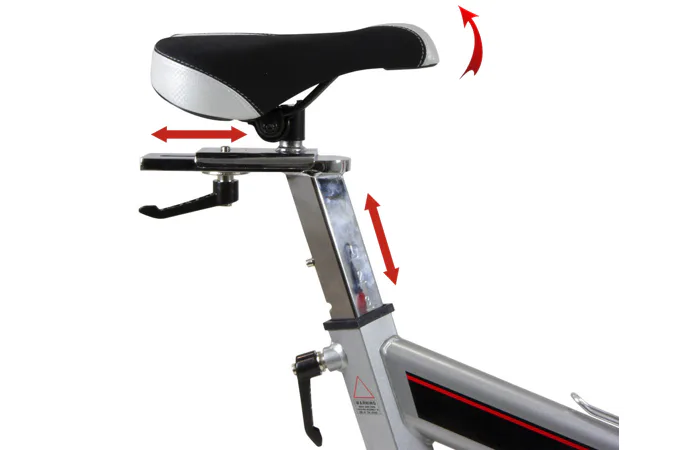 Kvalitní ergonomicky tvarované sedlo a triatlonová řidítka jsou nastavitelná v horizontálním i vertikálním směru + sklon sedla.