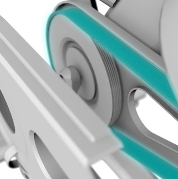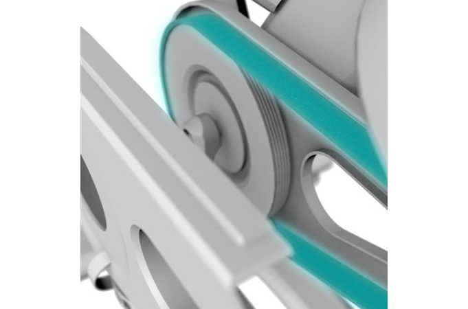 Kalibrovaný, těžký setrvačník o hmotnosti 22 kg a manuálně ovládaná přítlačná brzda ovládaná plynule otočným regulátorem poskytují maximální komfort i při intenzivním tréninku. Kvalitní mechanika zaručuje spolu s převodem plochým drážkovaným řemenem naprosto tichý chod trenažéru. Stálý převod bez volnoběhu pak zajistí dokonalý přenos zátěže na pedály.