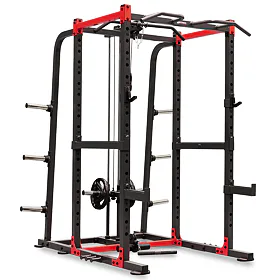 • robustní posilovací klec na dřepy s hrazdou a kladkami