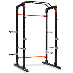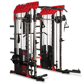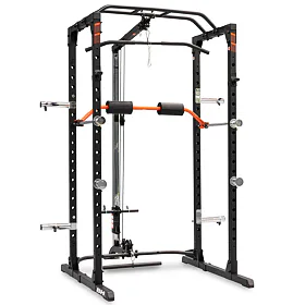 • robustní posilovací klec na dřepy s hrazdou a kladkami