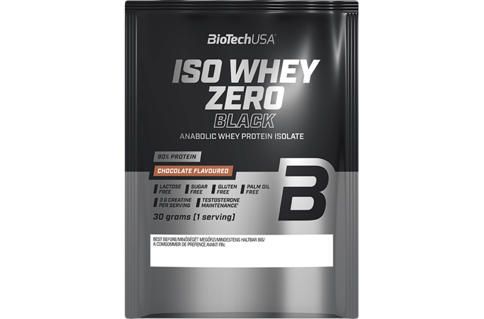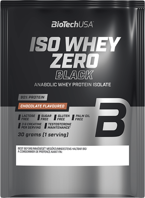 BiotechUSA Iso Whey Zero Black obsahuje 90% bílkovin nejvyšší kvality. Nativní Syrovátkový izolát se vyrábí přímo z čerstvého mléka pasterizací s následnou mikrofiltrací a ultrafiltrací při nízkých teplotách a následně rozmělněním ve speciální sušárně. Díky tomuto jedinečnému způsobu je biologická hodnota bílkoviny pořád stejná tzn: v té nejvyšší kvalitě. Schopnost vstřebávání řadí tento proteinový přípravek mezi absolutní špičku na trhu! Díky tomuto je bohatá na imunoglobin (je protein, který je schopen jako součást imunitního systému identifikovat a zneškodnit cizí objekty (bakterie a viry) a laktoferin (součást imunitního systému). V každá porce obsahuje 3 g kreatinu, což je jedna z hlavních složek pro zvýšení fyzické výkonnosti.
