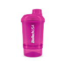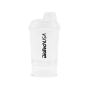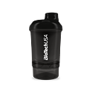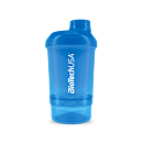 BioTech USA šejkr WAVE+ NANO je praktický dvojdílný šejkr pro přípravu koktejlů se šroubovacím uzávěrem. Objem shakeru je 300 ml s patrem na tablety, kapsle nebo prášek (150 ml). Spodní část slouží na prášek, tablety a kapsle, vrchní na přípravu nápoje. Mřížka zajistí kvalitní promíchání koktejlu. Při výrobě uzávěru a víčka byl použit měkčí typ plastu. Výsledkem je 100 % těsnost, tato jedinečná inovace zcela zabraňuje pronikání vody. Sítko je kuželovitého tvaru, které vícenásobně zvyšuje účinnost míchání. Vyšší účinnost je dosáhnutá díky většímu povrchu sítka a tedy i většímu přítoku tekutiny skrz sítko.