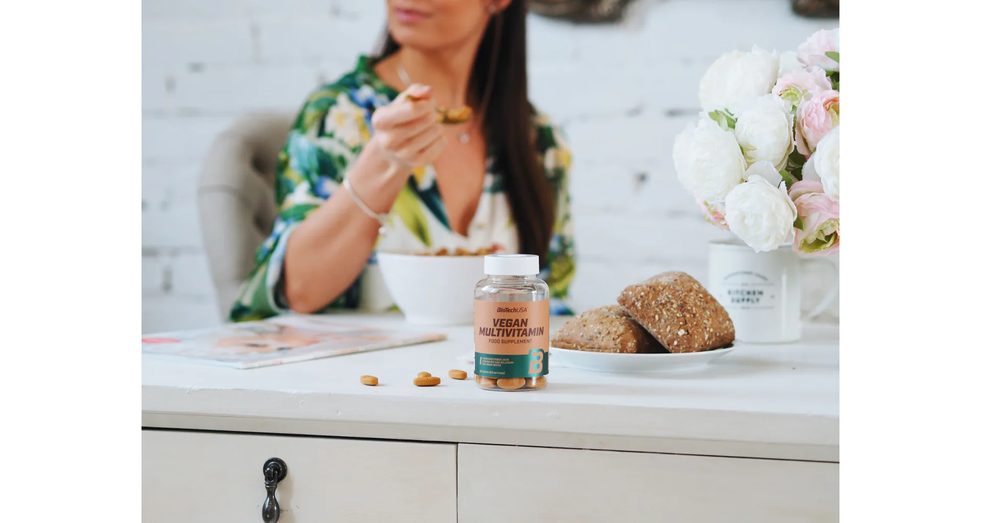 BIOTECH Vegan Multivitamin je veganská forma multivitaminu, který obsahuje 12 typů vitamínů a 10 typů minerálů a je dokonale vhodný pro veganskou nebo vegetariánskou stravu. Mimo jiné podporuje veganské potřeby zvýšeným obsahem vitamínu B2, B12 a selenu.