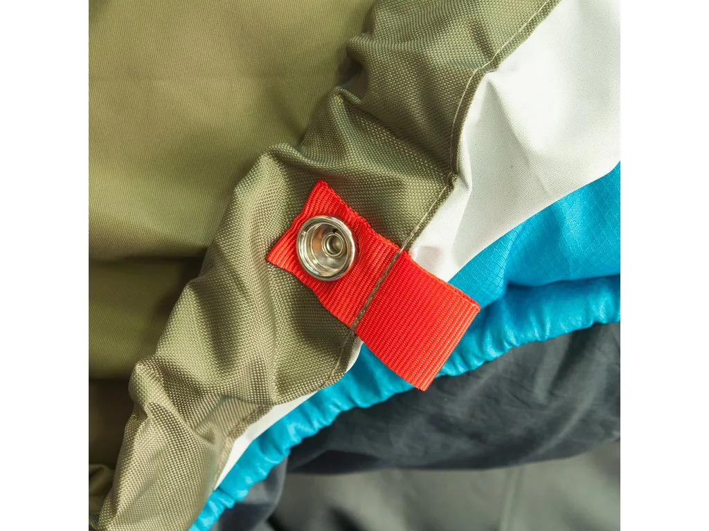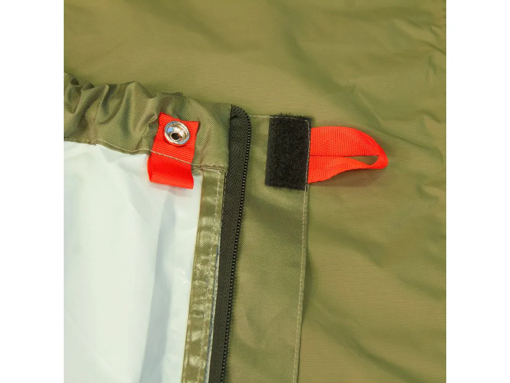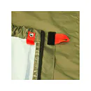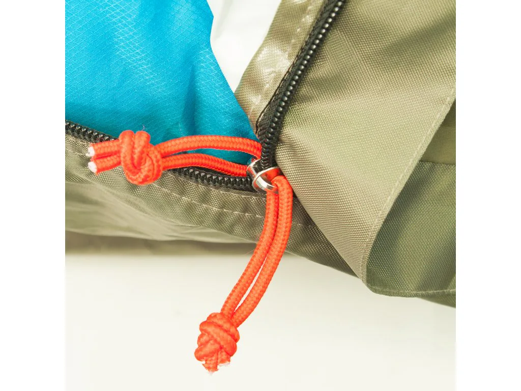 Zipy na obou stranách jsou kryté légou a umožňují pohodlné používání. Na pravé straně je zip skoro až k chodidlům, aby byl kompatibilní se spacákem se zapínáním vpravo. Pytel je dostatečně velký pro všechny druhy spacáků a můžete do něj vložit i karimatku a některé osobní věci. Vnitřní kapsa na doklady. Moskytiéra v oblasti hlavy.